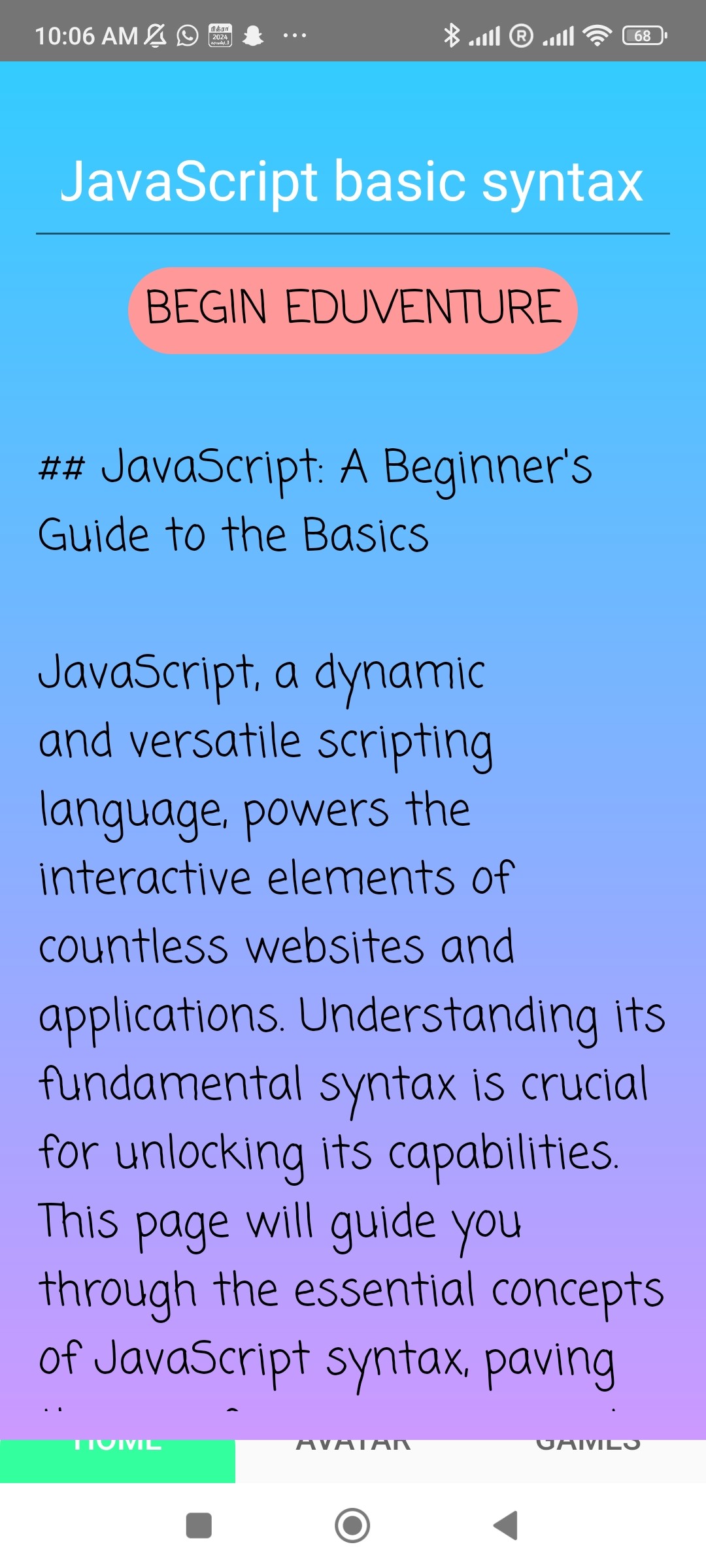 The way we built it is by creating a main login page for any user. The login page leads them onwards to main homepage containing reading extracts based on their search. They can swip right to their avatar stats page where they can set their avatar pfp and see their attribute scores. The third page contains games like tic tac toe, etc.