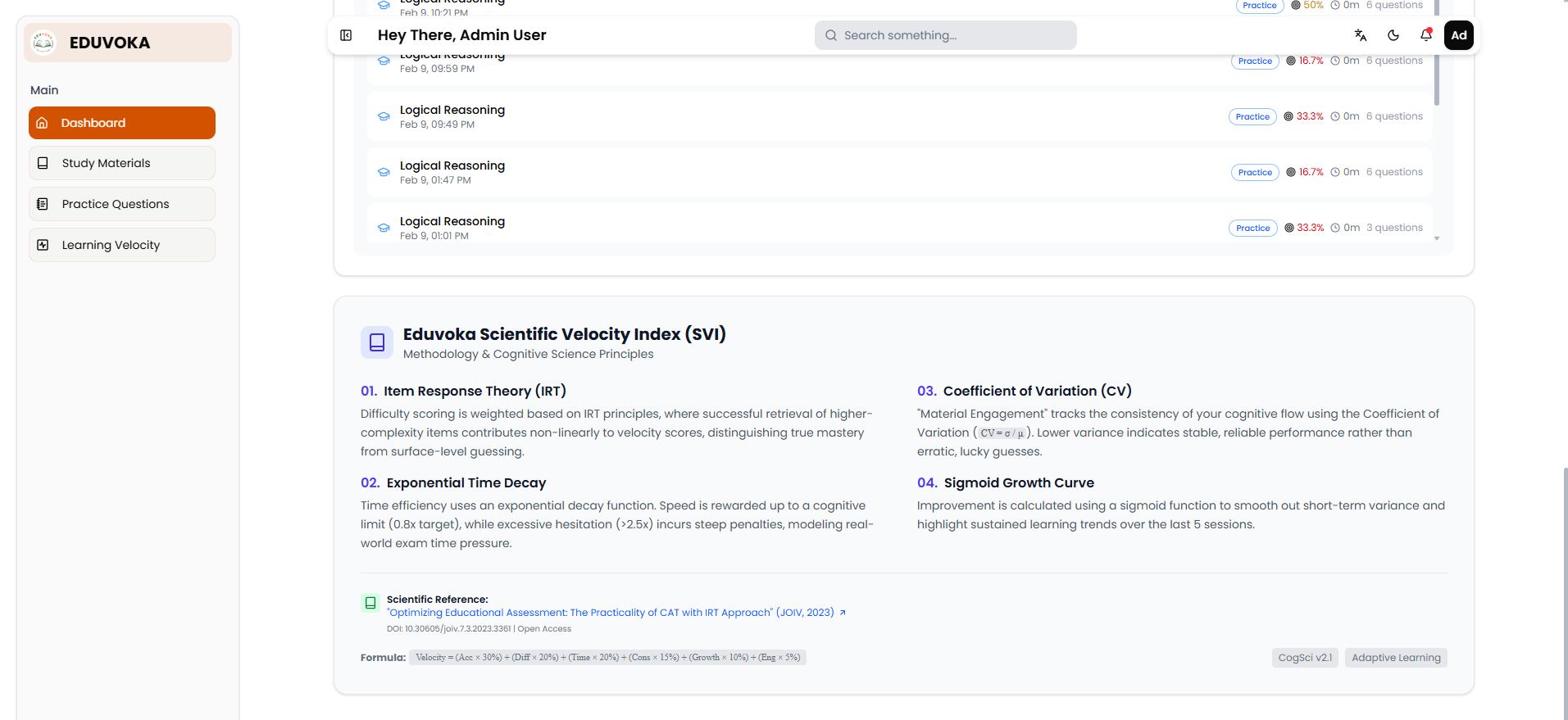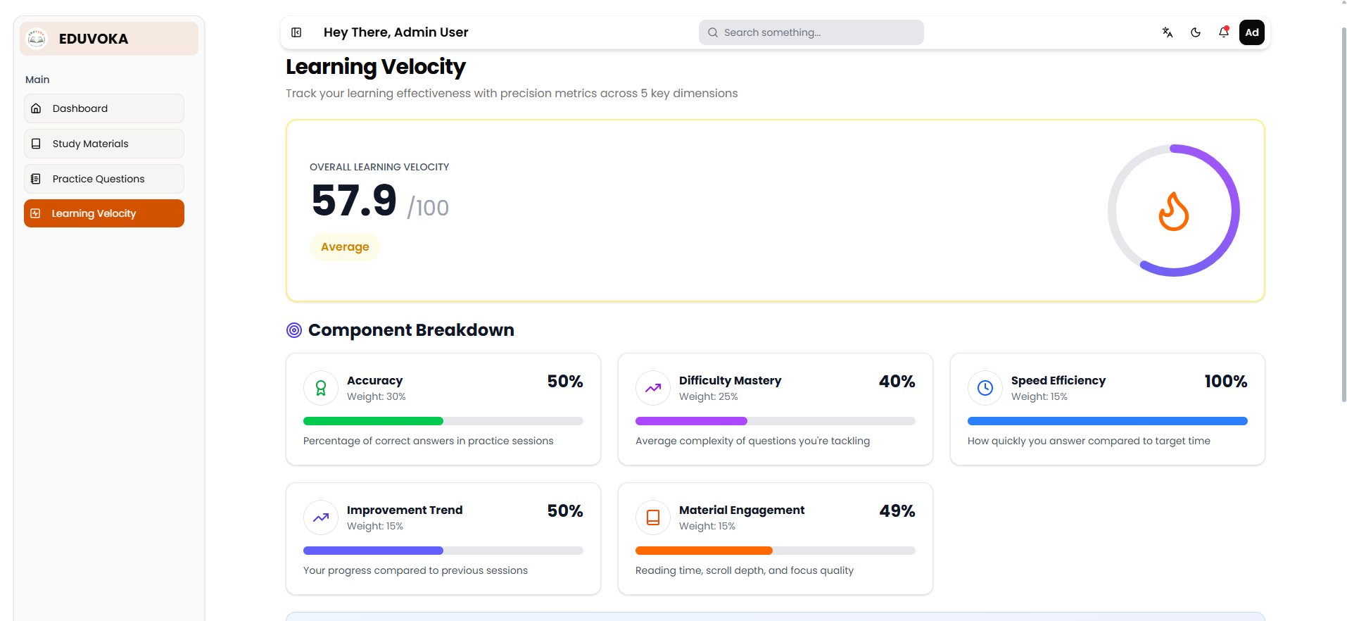 Learning Velocity: "Track your cognitive engagement, fatigue patterns, and mastery speed with real-time scientific performance analytics."