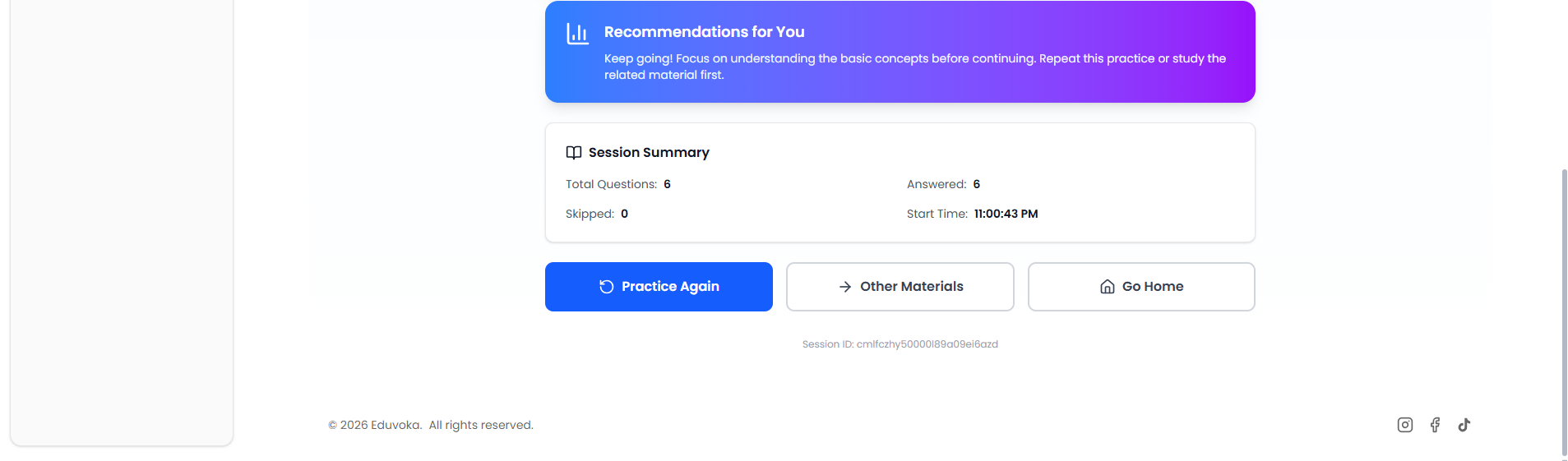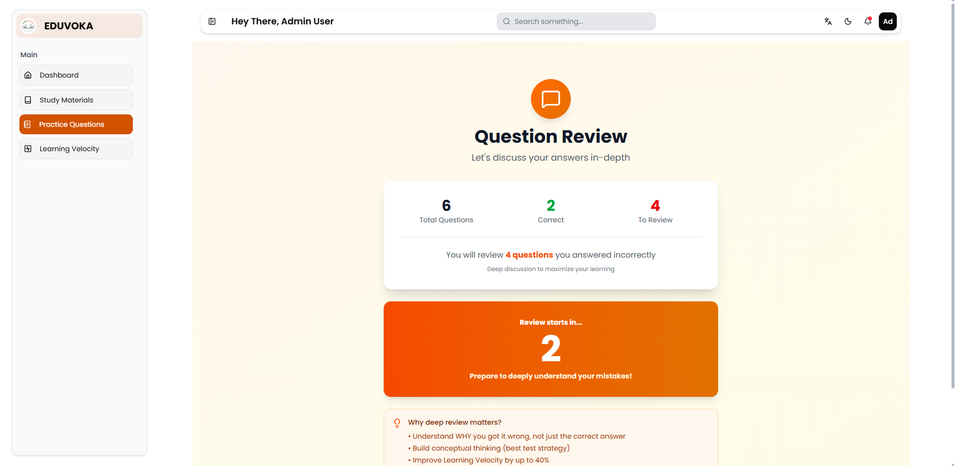 Eduvoka is an AI-powered learning platform that transforms typical quiz-taking into a Deep Inquiry experience.