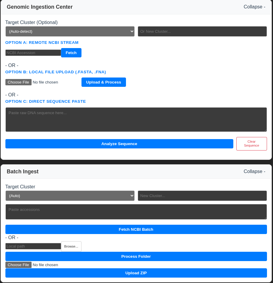 - Live NCBI Streaming: Instant retrieval and 3D instantiation of genomes directly from the cloud via accession numbers.