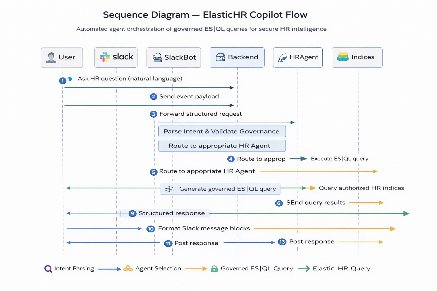 ElasticHR Copilot introduces a governance-first, domain-driven AI architecture. Key innovations include: