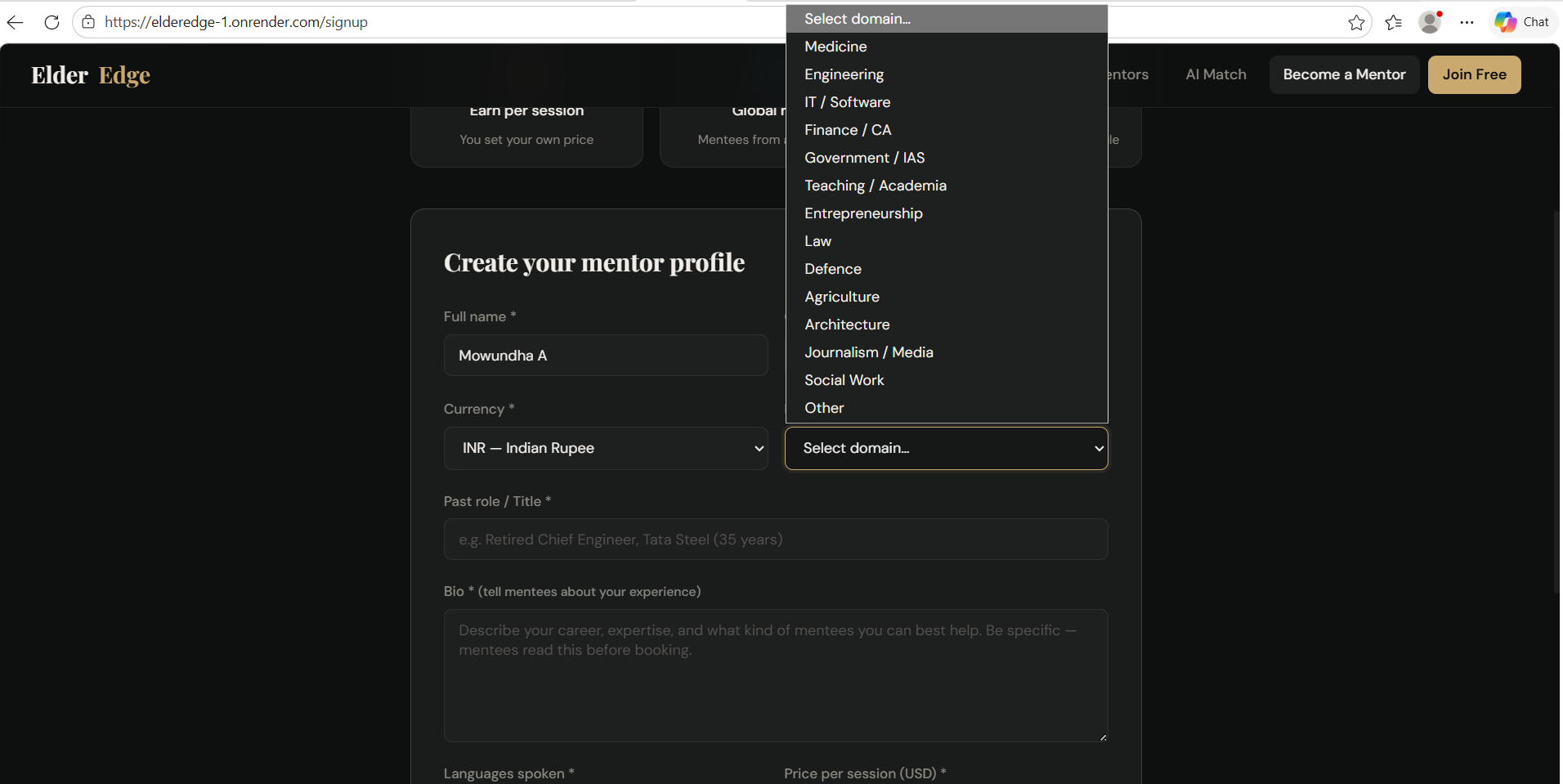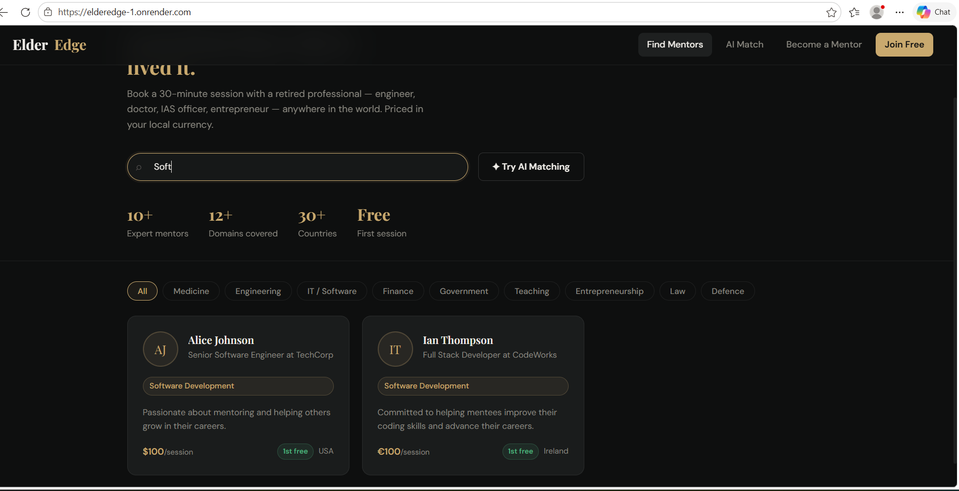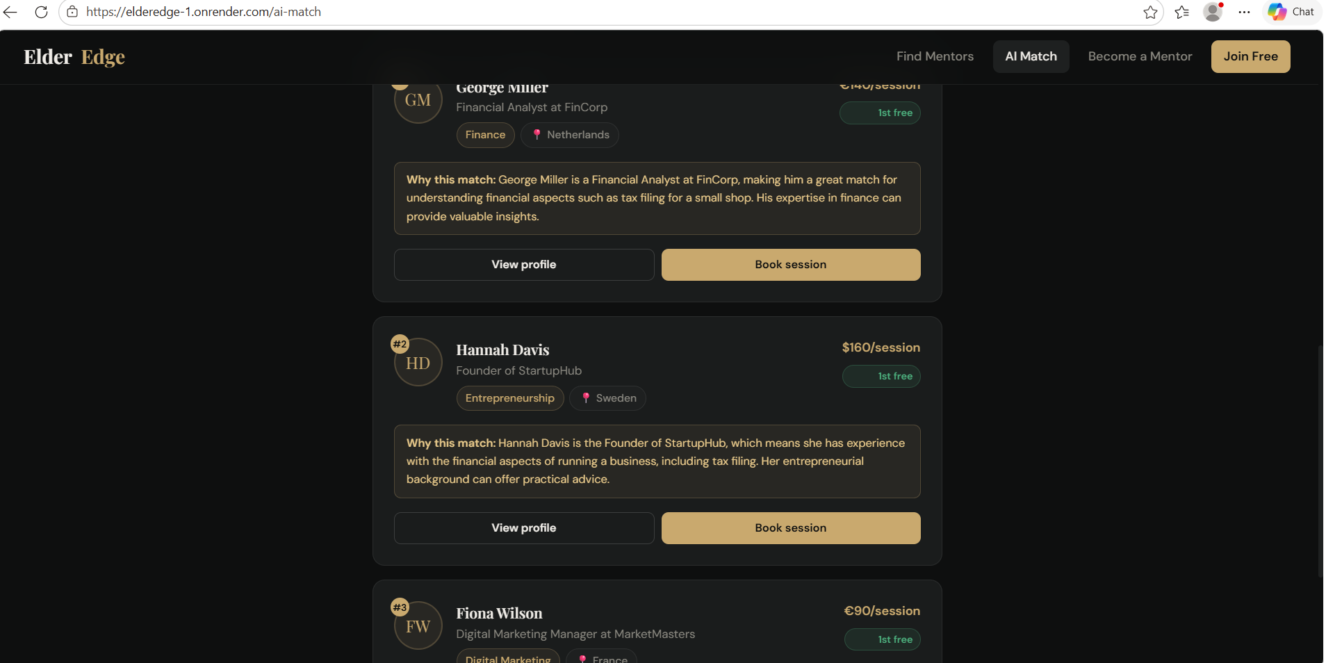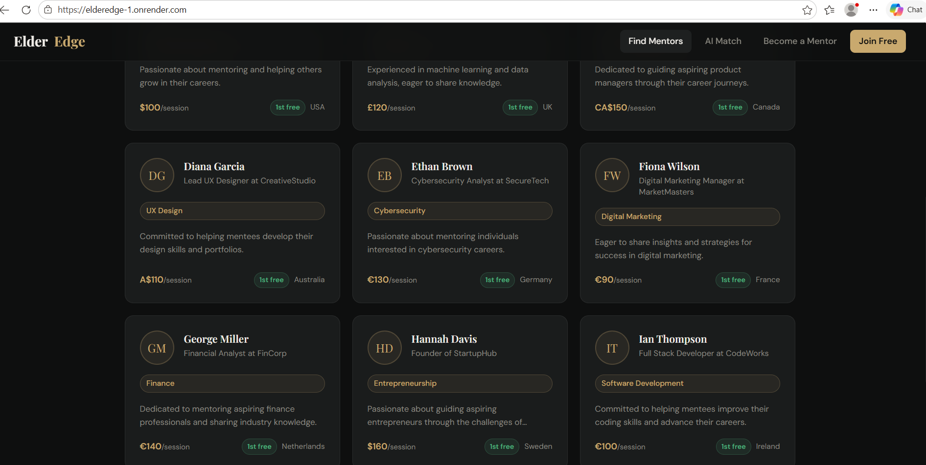 ElderEdge is a global micro-mentoring platform where retired professionals share their expertise through affordable 30-minute sessions.
