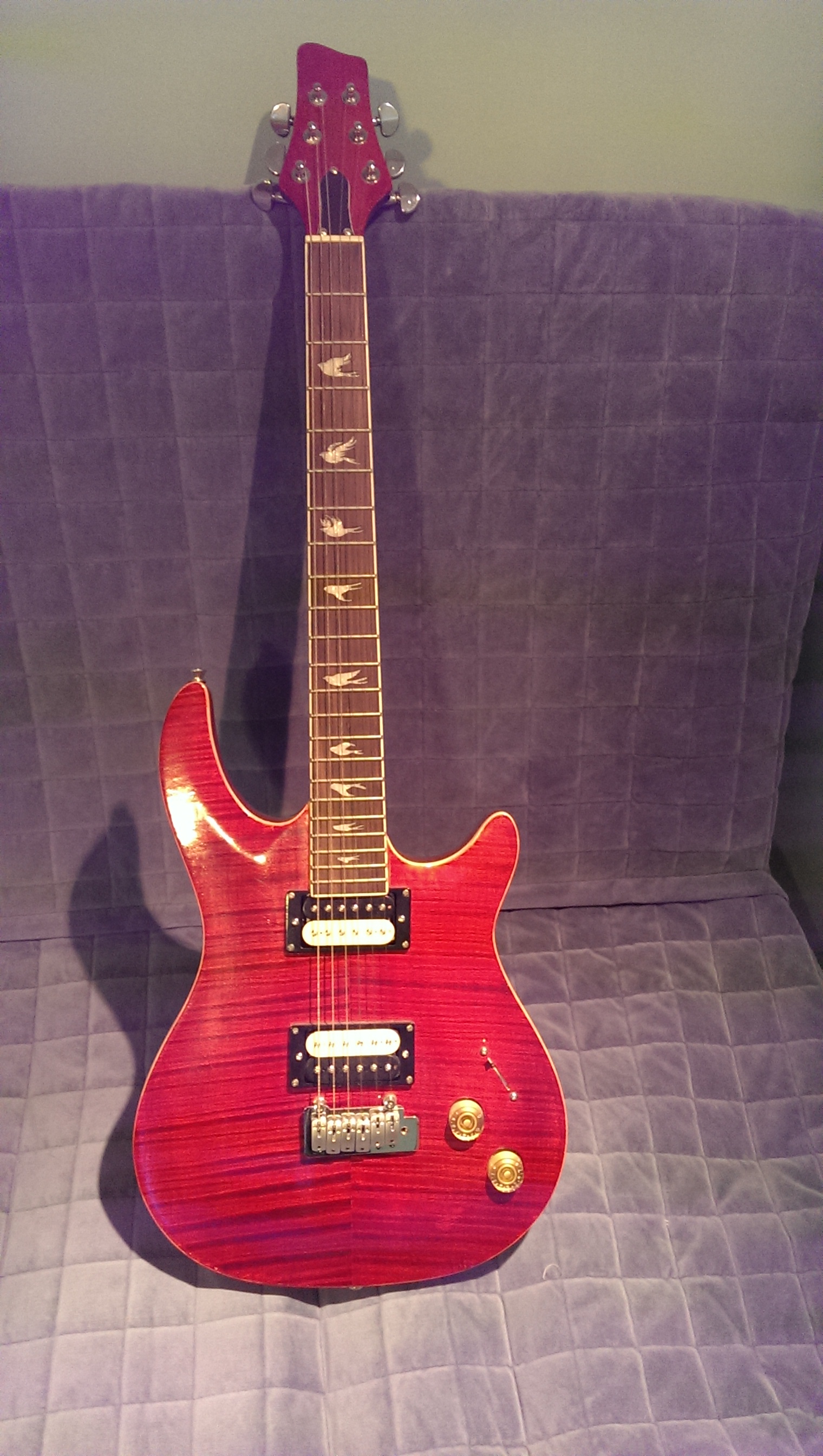 I've always enjoyed playing music. I play piano, guitar, saxaphone, and drums. A few years ago, I really wanted a new guitar but wasn't able to afford one. I thought "Why not build one myself?" and this project was born. This guitar was inspired by PRS guitars, as can be seen from the similarly styled body.