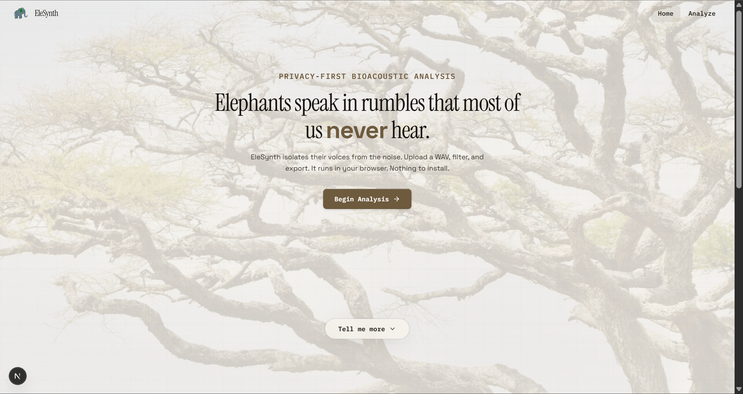 Years of elephant field recordings sitting unused because of background noise from cars and planes, and we wanted to give those recordings a second life.