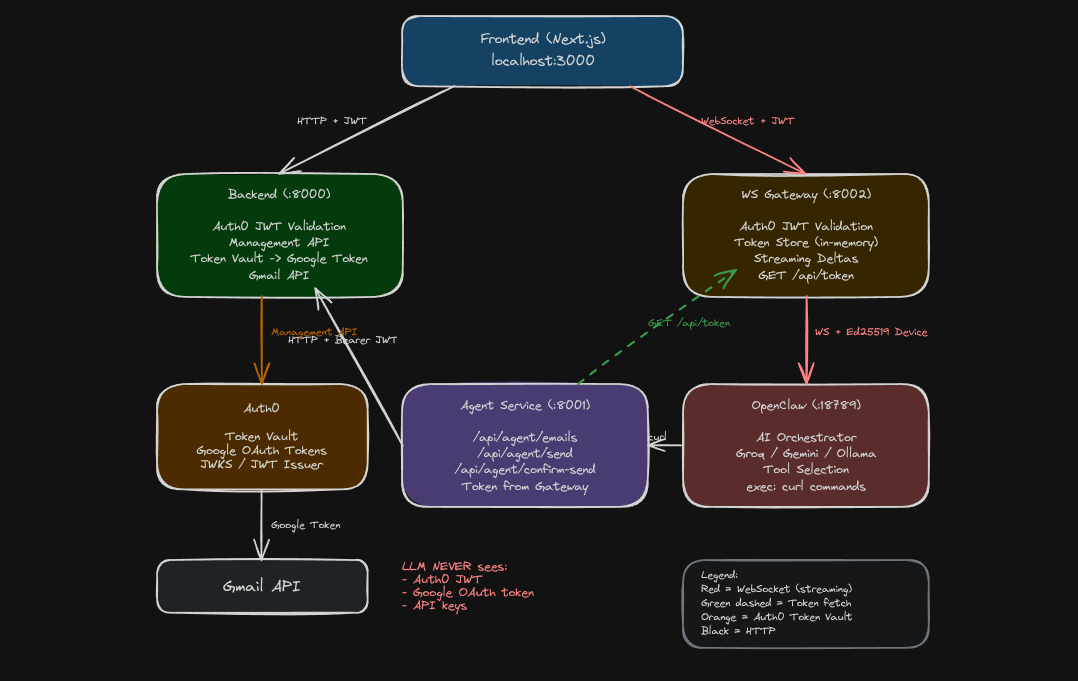 One of the main challenges was handling authentication properly, especially with OAuth and token management. We also faced issues with connecting different components like the agent system and email services. Debugging real-time communication and API errors took a lot of time.