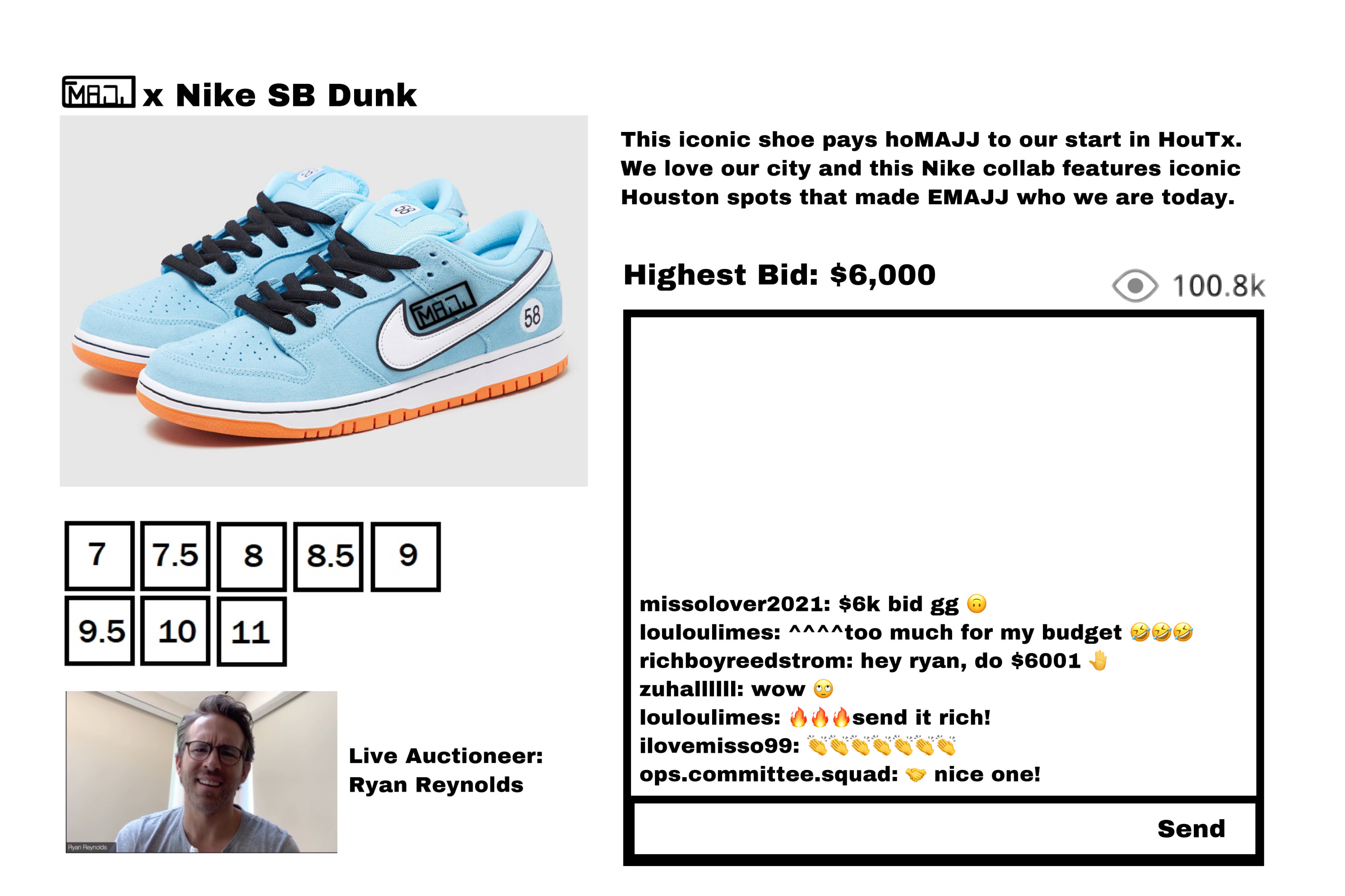 We took inspiration from Grailed, H&M, sneakerhead raffles, and Twitch.tv when creating our webpage and our proposed ideas (conceptual UI's can be seen in our video). We wanted the EMAJJ website to look modern, upbeat, fun, and create excitement for users while streamlining customer navigation of the site, matching the company's core goals.