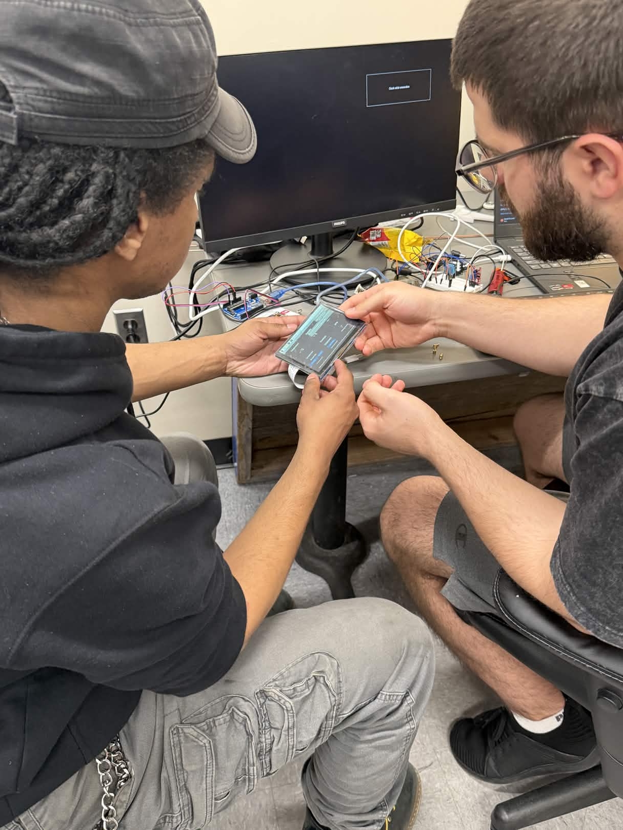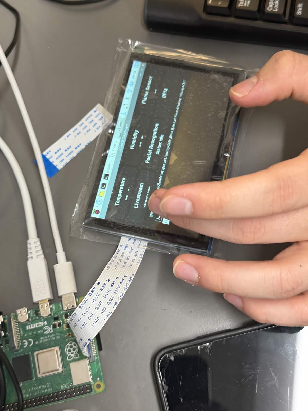 We were inspired by the courageous EMS workers that respond to natural disasters in low signal environments filled with hazards. To help aid these heroes we decided to create a gauntlet that leverages all different types of sensors. These sensors include a pulse sensor to check on victims and the user and ensure proper health. We included a temperature and a humidity sensor to determine the quality of the direct environment the EMS workers were responding in. We also included a flame detector to alert the user of an impending hazard with a built in ranged sensor. Finally we included a wireless flashlight mounted to the gauntlet to help the user localize victims and have both hands free while administering aid. We built it with a raspberry pi 4b as our microcomputer interfacing with our LCD screen and microcontrollers and sending data back to the home base. The microcontrollers, Arduino Uno R3, were used to power and control peripheral sensors. We used bread boards to test and develop our circuits and electrical components to increase performance. We used 3D printing to create our chassis and hold together our components. We used a mix of fasteners to create a modular fit that could be fitted to the user. We ran into a series of challenges with the microcontrollers and connectivity. We're proud of our fitted project that is able to detect crucial information for EMS personnel. We're proud of our pulse sensor and compatibility between systems. We learned significantly about different electrical principles, computer science principles, and manufacturing principles. Moving forward we are looking forward to integrating AI to help our video feed go to a facial recognition module that feeds medical information to the EMS personnel while they're in the field. Furthermore we'd like to add voice module and commands for the sensors to keep our hands free theme for the responders.