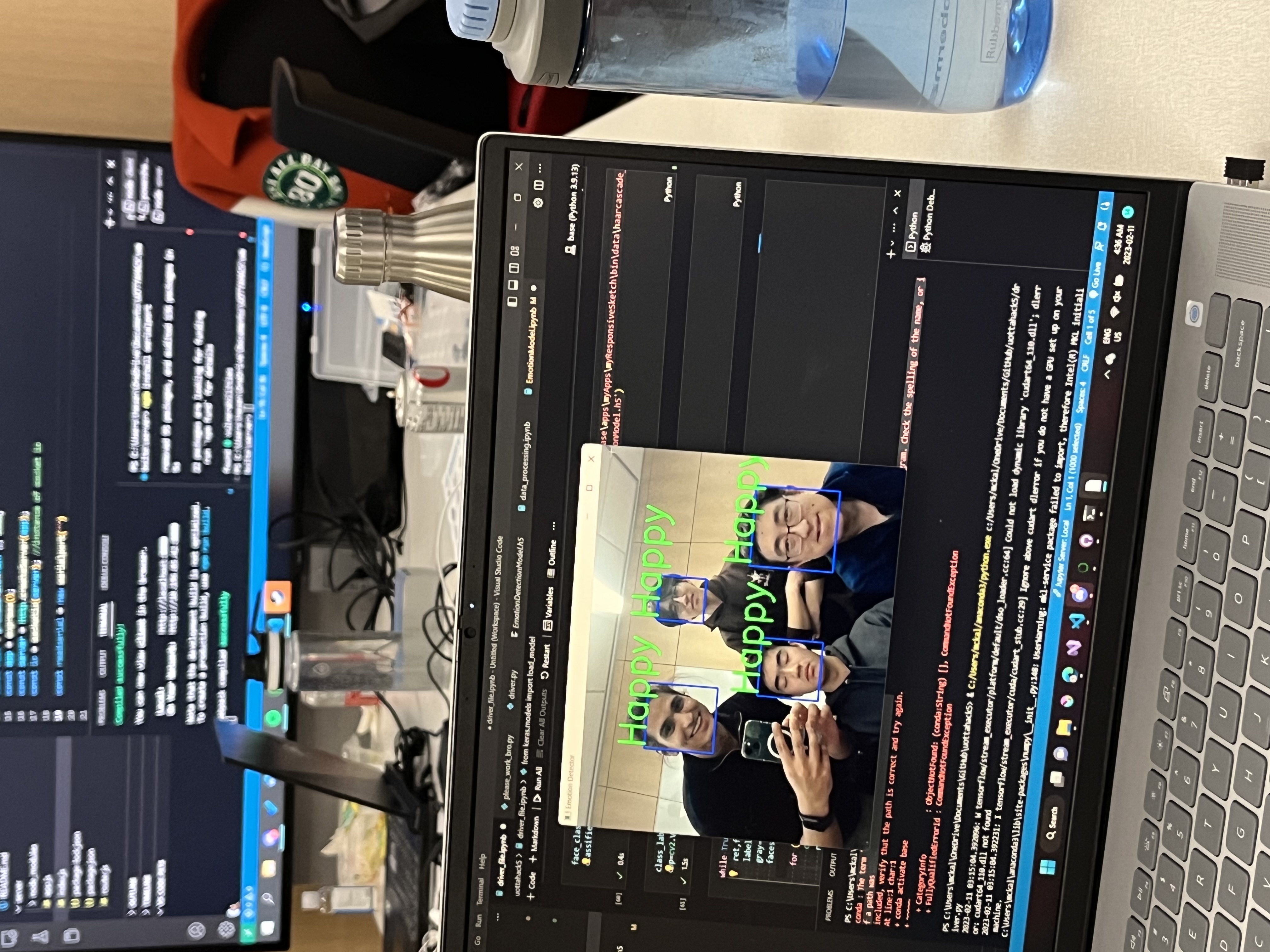 First we created a sequential model using 8 convolutional layers based on the fer2013 data set we found from Kaggle. Which includes about 24000 training images and 3000 validation images, after various transformations we end up having about 4.7 million parameters to train our model. Then after some optimization, we sent the model to our website by using the external flask library to return the live footage into an html file.