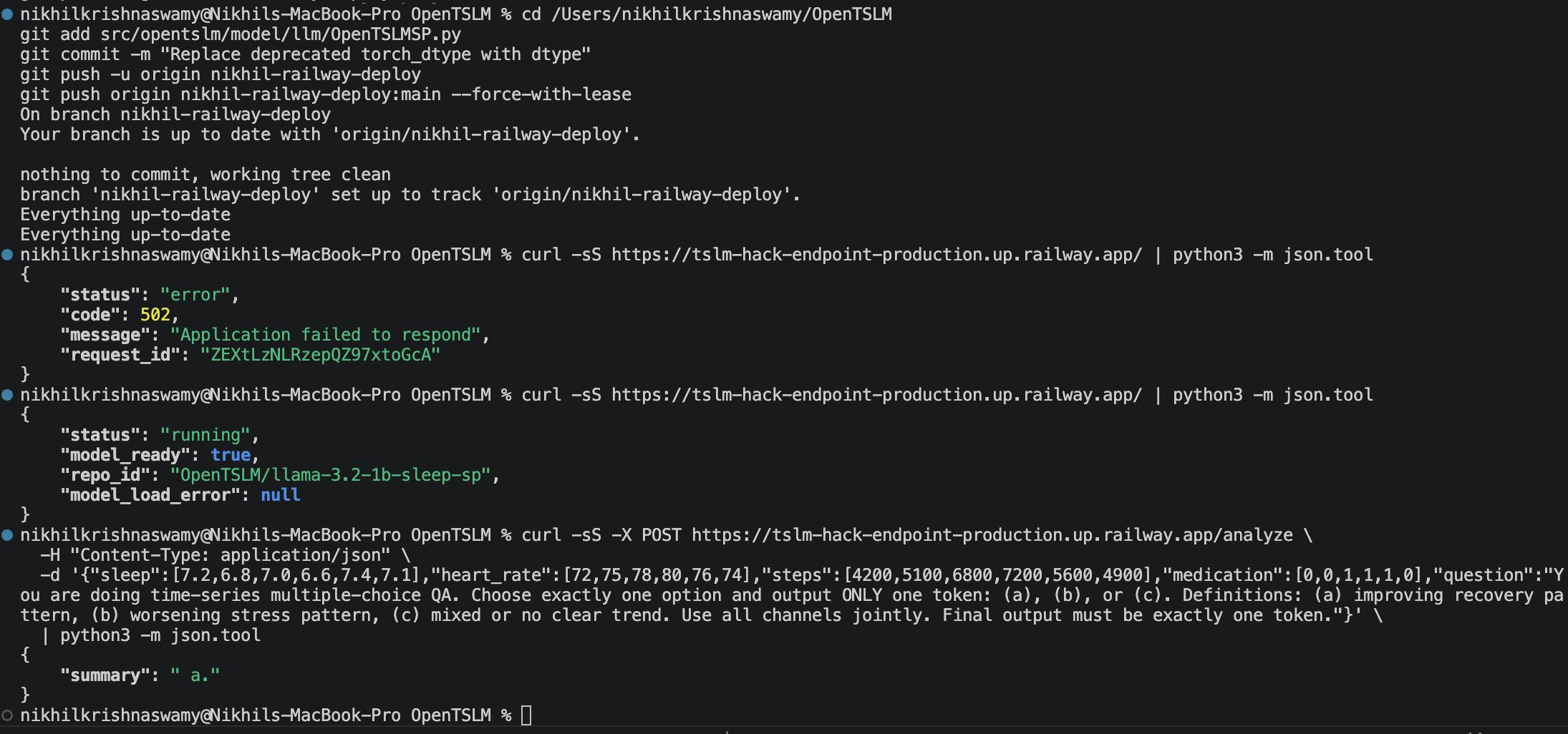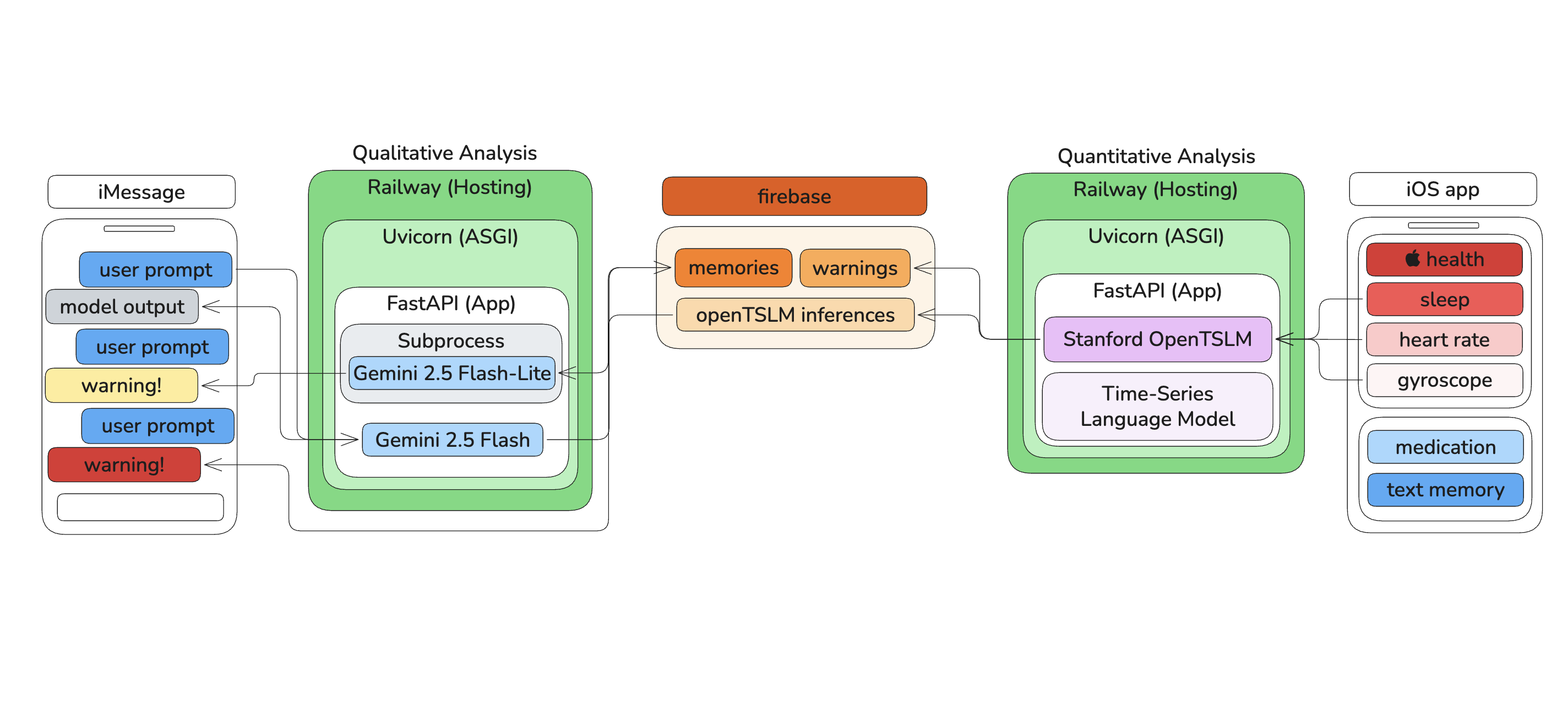 Structuring time series payloads for the OpenTSLM model was difficult to debug until it consistently produced an output of usable clinical memories. Prompt structure, data formatting, and how we represented temporal context all mattered more than we initially expected. The Llama model, model checkpoints, and custom transformer weights took several tries and references to public resources to get working effectively.