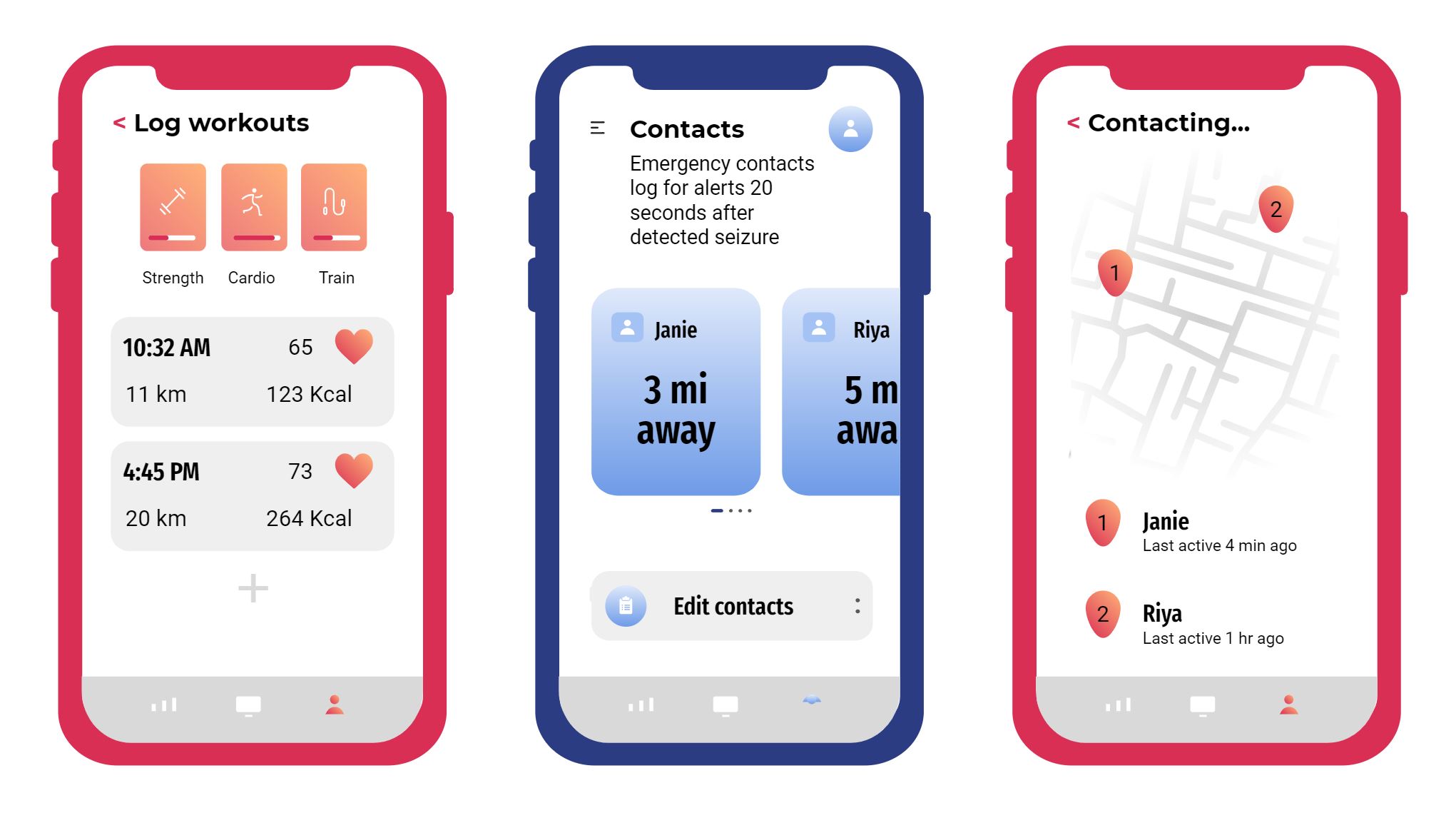 Our smartwatch tracks health metrics and fitness activity like other health-oriented watches, but it also accounts for people with epilepsy by detecting seizures and predicting future episodes. EpiCare uses advanced biosensor technology to recognize convulsive body movements like intense shaking and pulse irregularities to detect oncoming seizures. Its unique monitoring system links to our app, which, based on the duration of a seizure, will alert user-chosen contacts or the ambulance if life-threatening. Unlike other seizure-detecting devices, EpiCare can help to predict future seizure episodes before they even happen using machine learning. EpiCare allows patients to stay active, while simultaneously enabling epileptic patients, their caregivers, and doctors to monitor patients’ vital signs, lifestyle, and episode patterns through a dedicated mobile app.