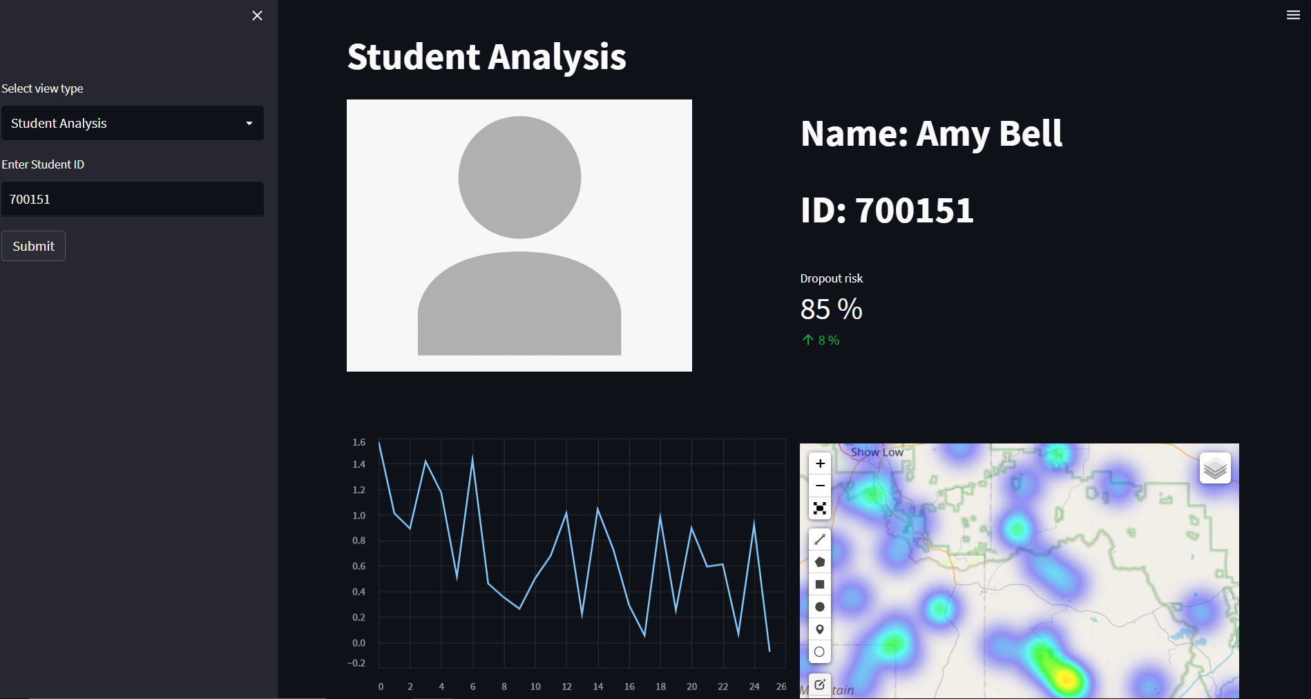I used several technologies behind the scenes to make this project easy to use and powerful. I used Streamlit in the frontend to display the dashboard and connect to the machine learning models in the back. The data I used for the project was collected from the Arizona’s Education Department. The data had quirks like missing values, skewed columns and large ranges. I did some preprocessing to make the data usable. I also dived deep into analyzing the data and created several reports to summarize the results. For the predictor, I tried several models. Ensembles of tree-based models like Xgboost, Cat Boost and Random Forests gave the best accuracy. I tried creating RNN’s with TensorFlow, but they tended to over fit the relatively small dataset. Using these tuned predictive models, we can generate risk scores for new sets of students.