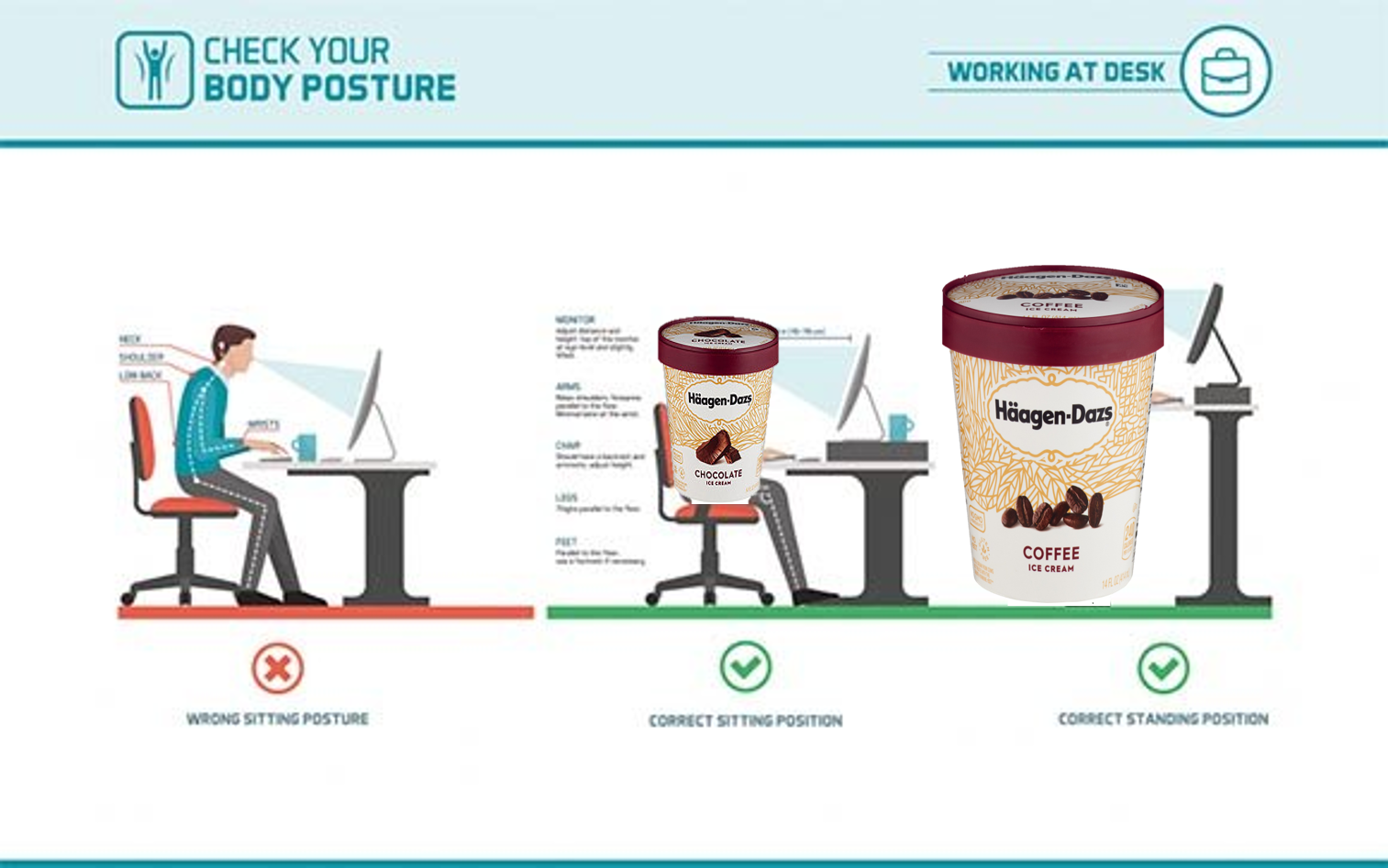 Ergen-Dazs allows people to take a picture of themselves to calibrate a model that detects how far their face is from the screen in real time. In accordance with ergonomic best practices, it enables people to adjust their desk setups.