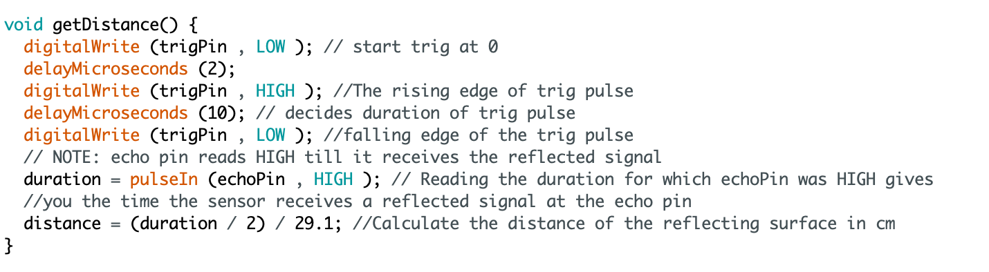 Function to get distance with the ping sensor.