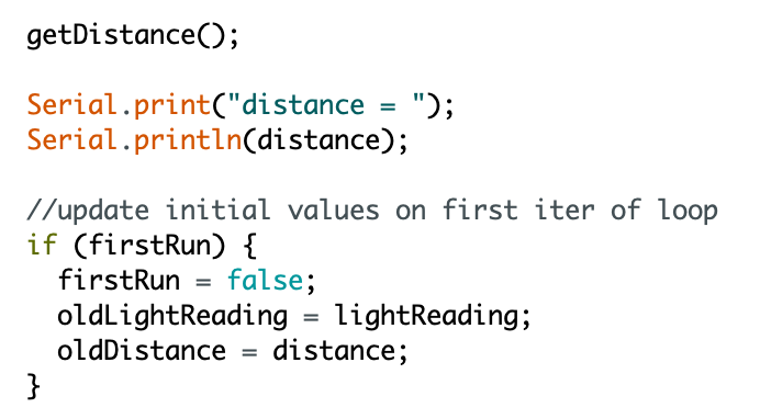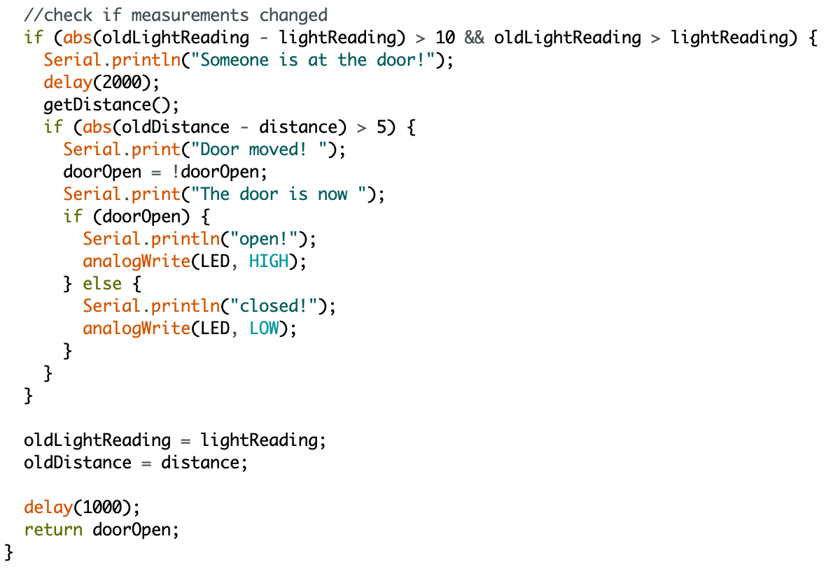 Third part of the main function getDoorStatus(). This updates the door status based on any differences detected in the light and distance.