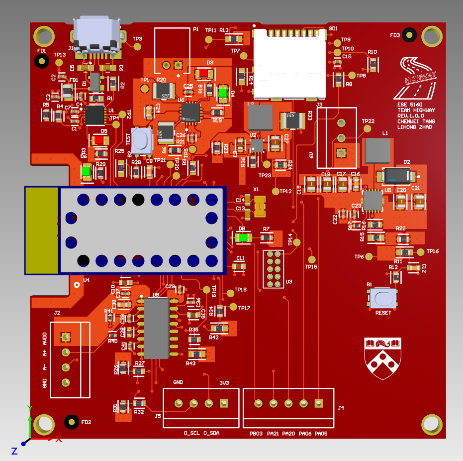 We utilized Altium Designer to design the four-layer PCBA. The MCU and sensor components were designed in accordance with the respective datasheets, while the power component was developed using TI Power Designer.