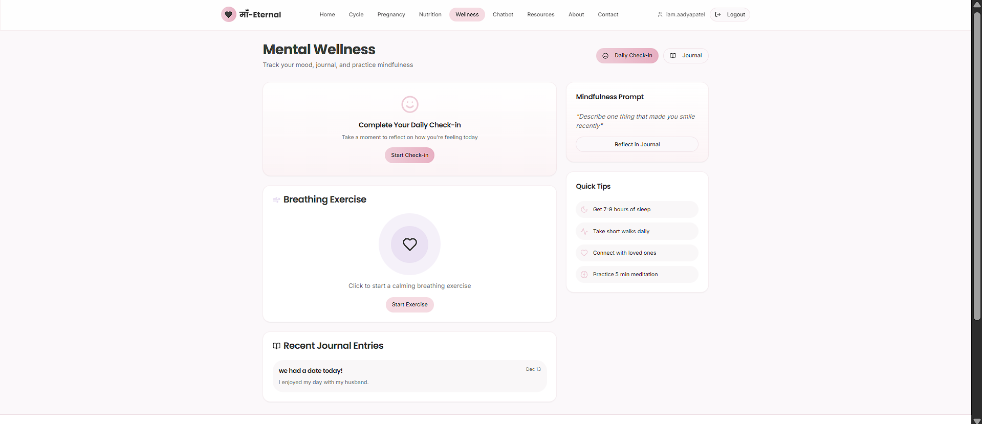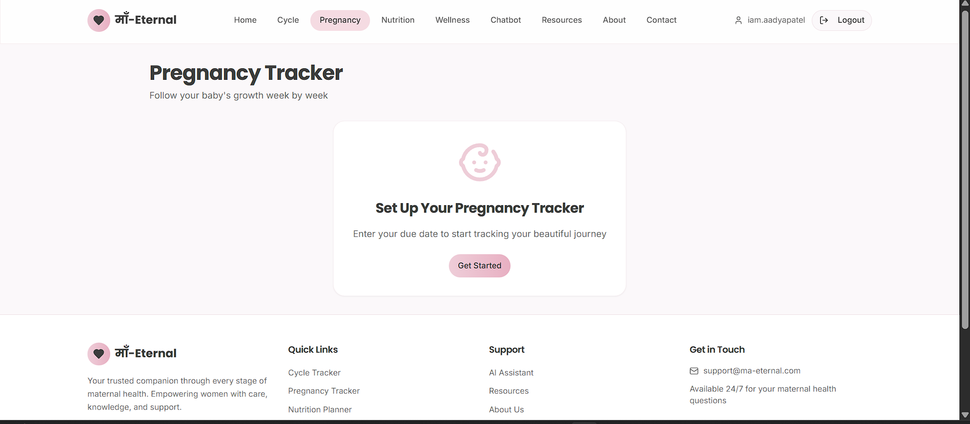 माँ-Eternal supports women across their entire reproductive journey with accessible, empathetic, and privacy-focused features.