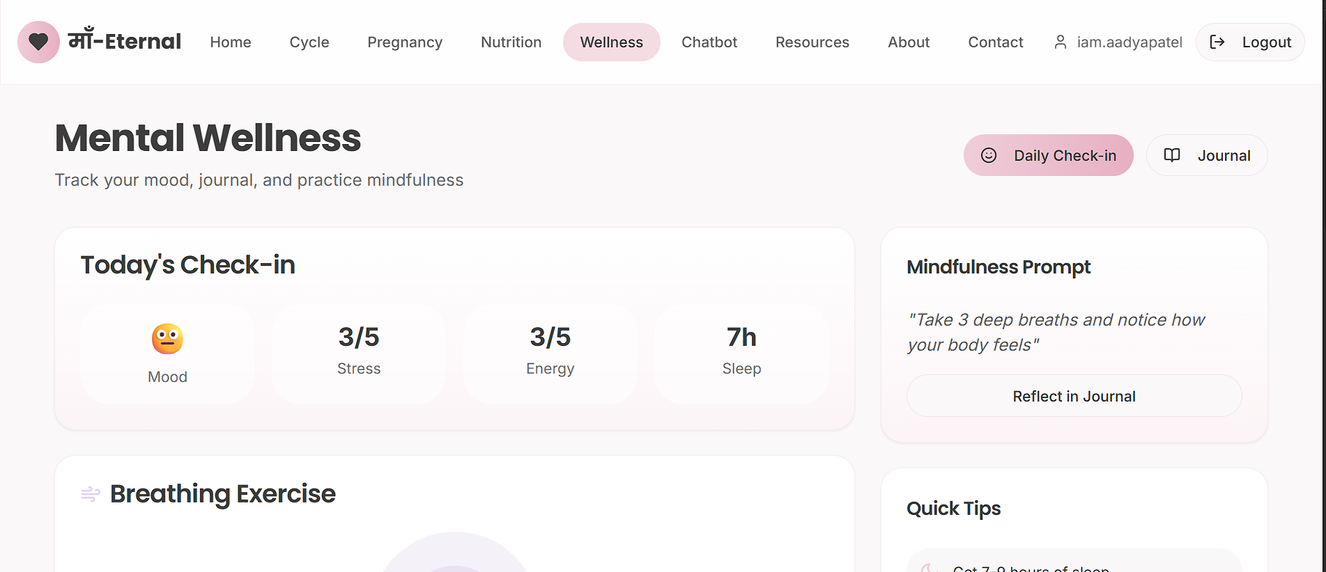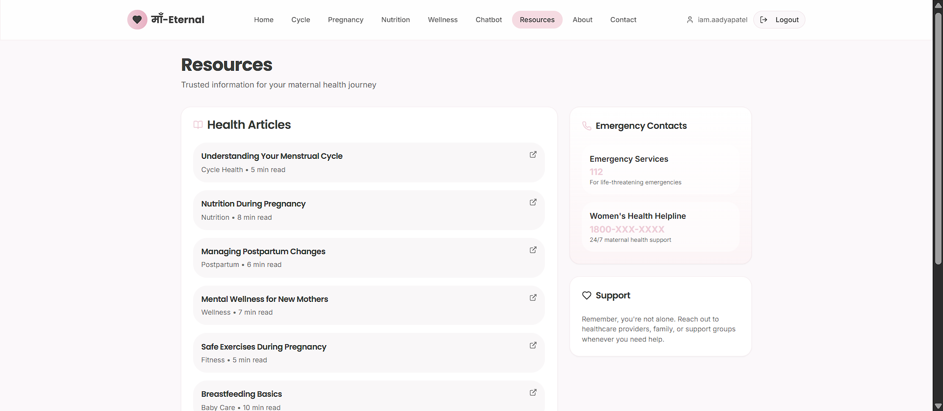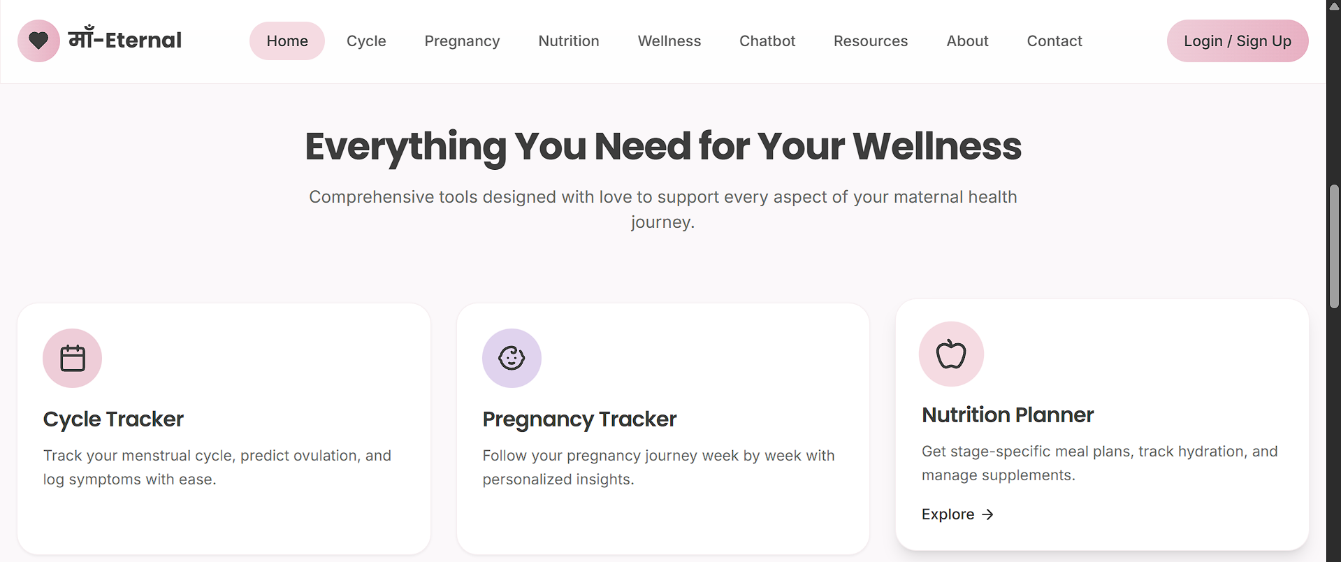 We designed माँ-Eternal to be simple, accessible, and mobile-friendly — especially for women using low-resource devices.