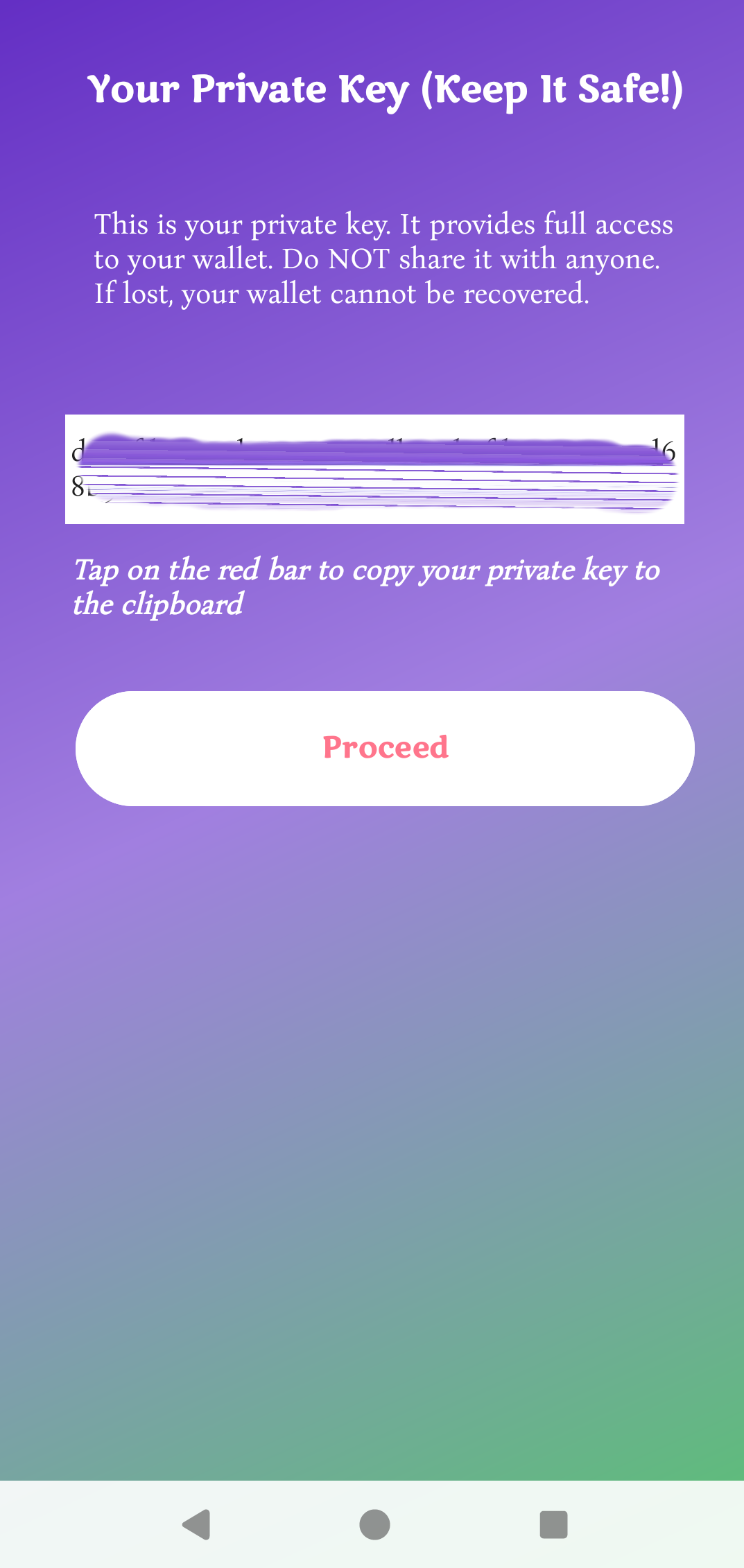 Signup Generate private key screen