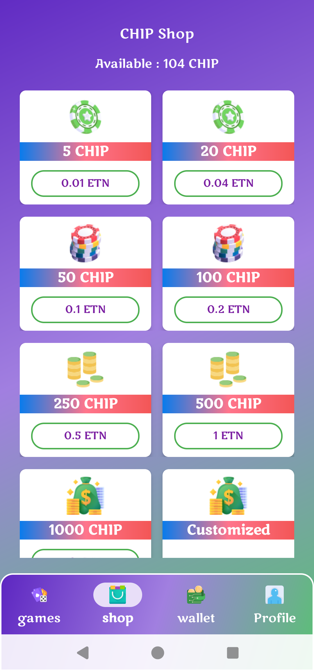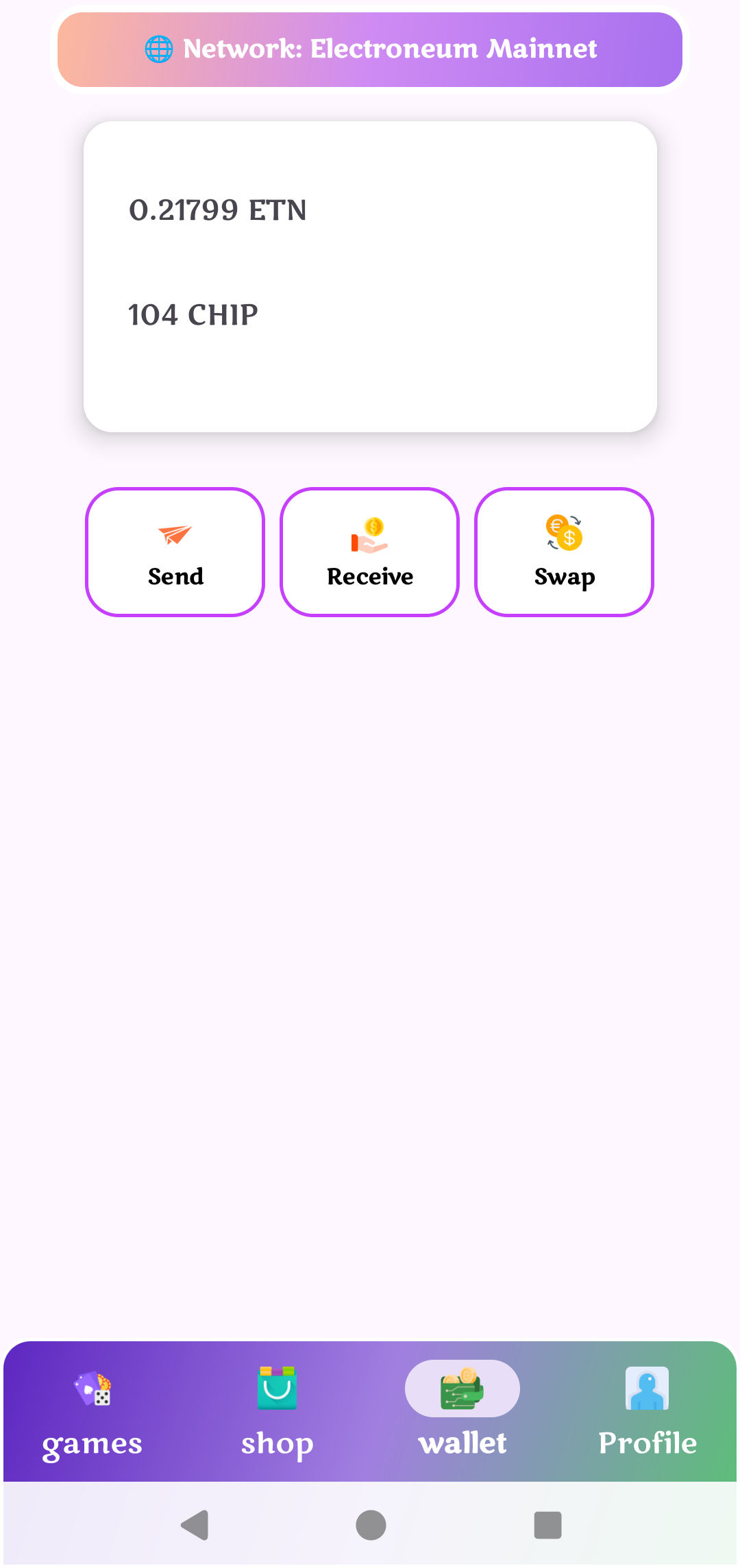 Players can use their Electroneum to buy chips within the app, and they can also swap chips back into Electroneum 🪙