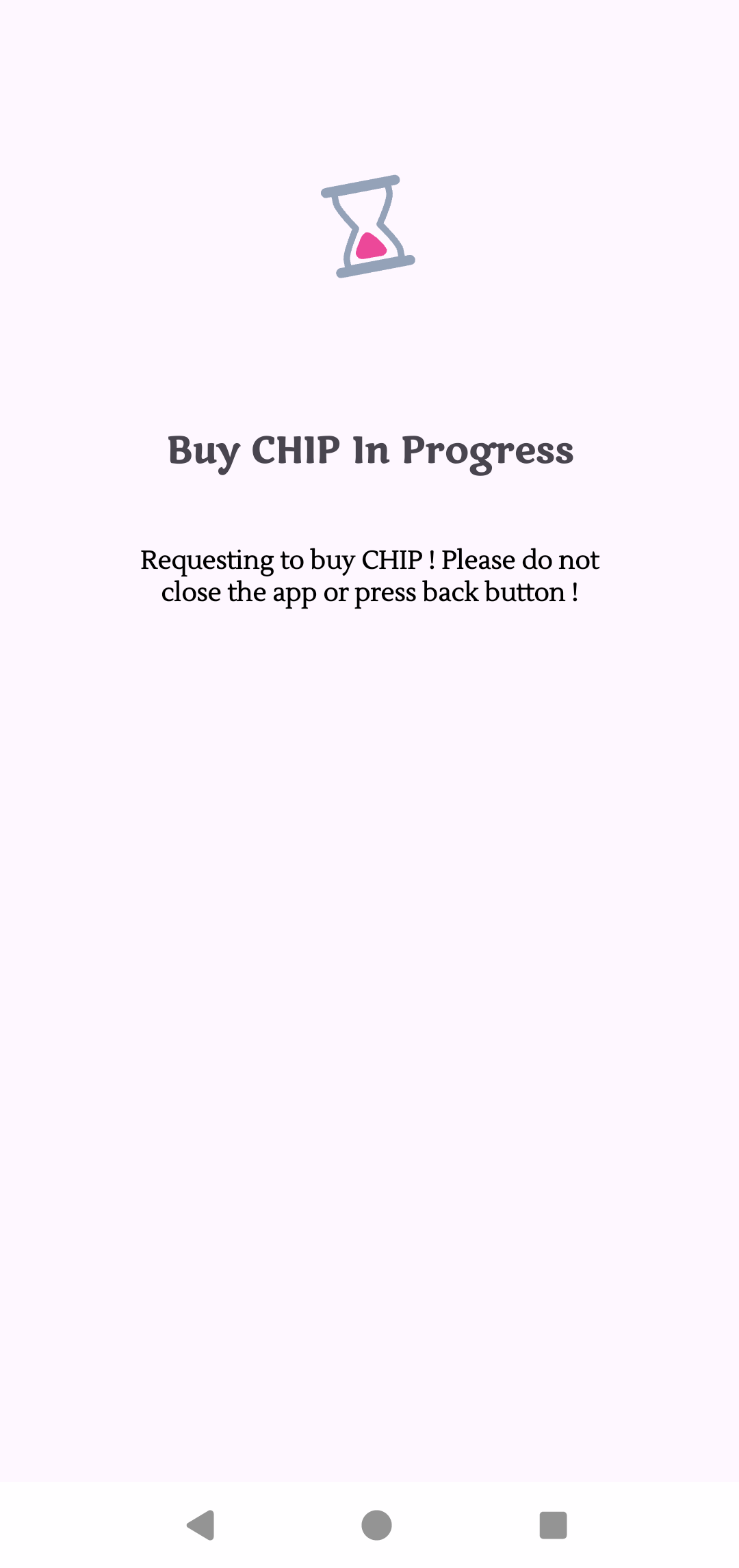 Buy chip in progress screen