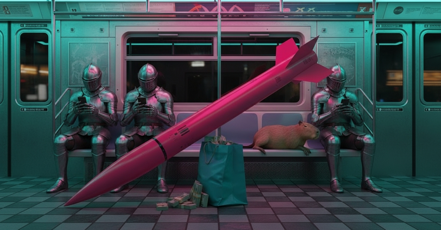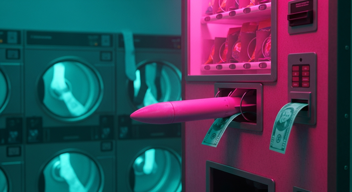 I was inspired by the aesthetics of still life painting, vaporwave consumerism, and the banality of modern economics — imagining what it would look like if the true costs of war appeared in our kitchens, laundromats, and supermarkets. A pale pink missile and a teal bag of cash became recurring icons, placed among ordinary people in absurd professions. Together they form a cinematic loop — part critique, part confession — of a system that turns ethics into accounting.