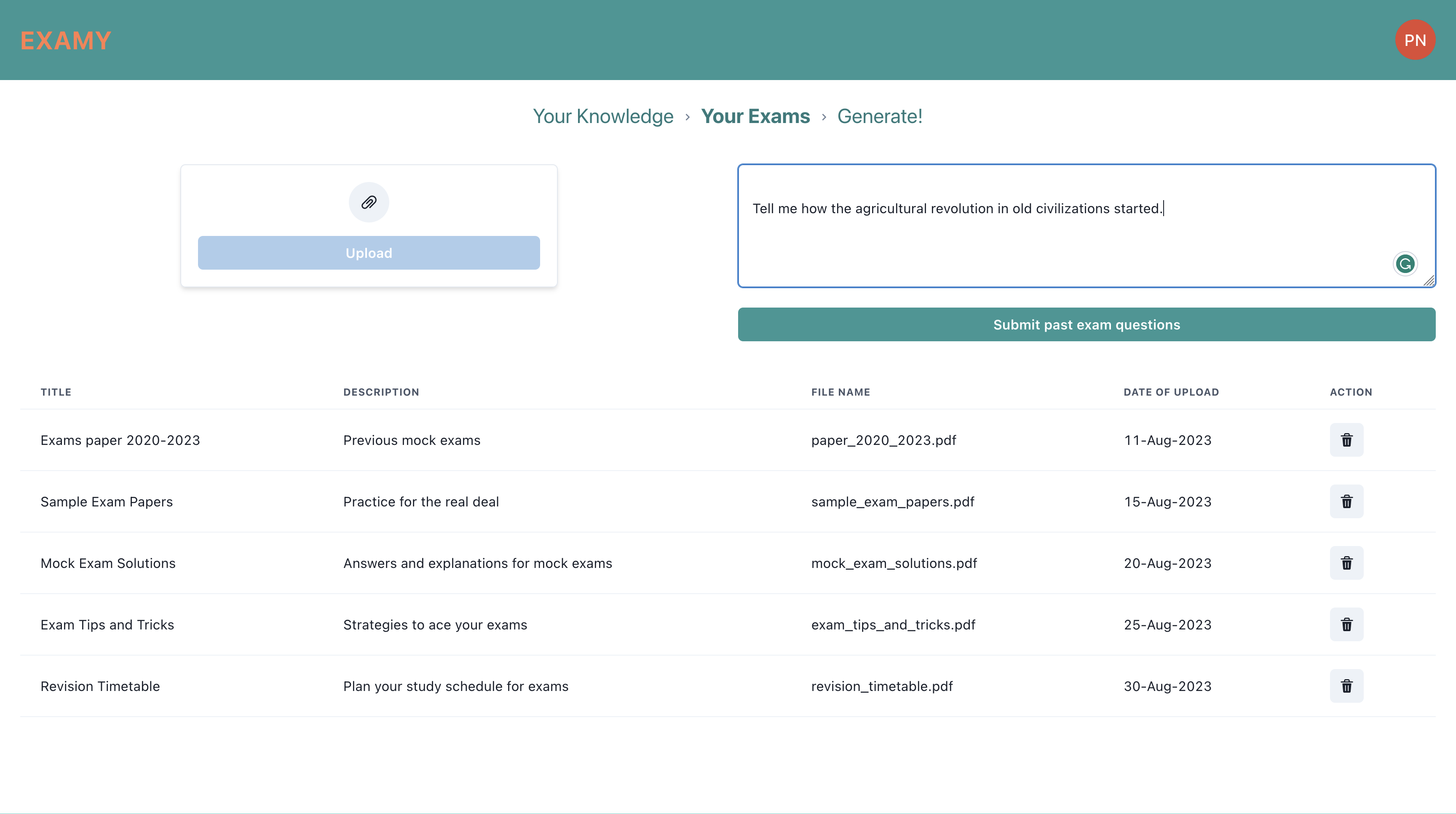 We built Examy using cutting-edge algorithms to analyze and understand diverse coursework and exam patterns. The platform seamlessly integrates user uploads to create a personalized learning experience.