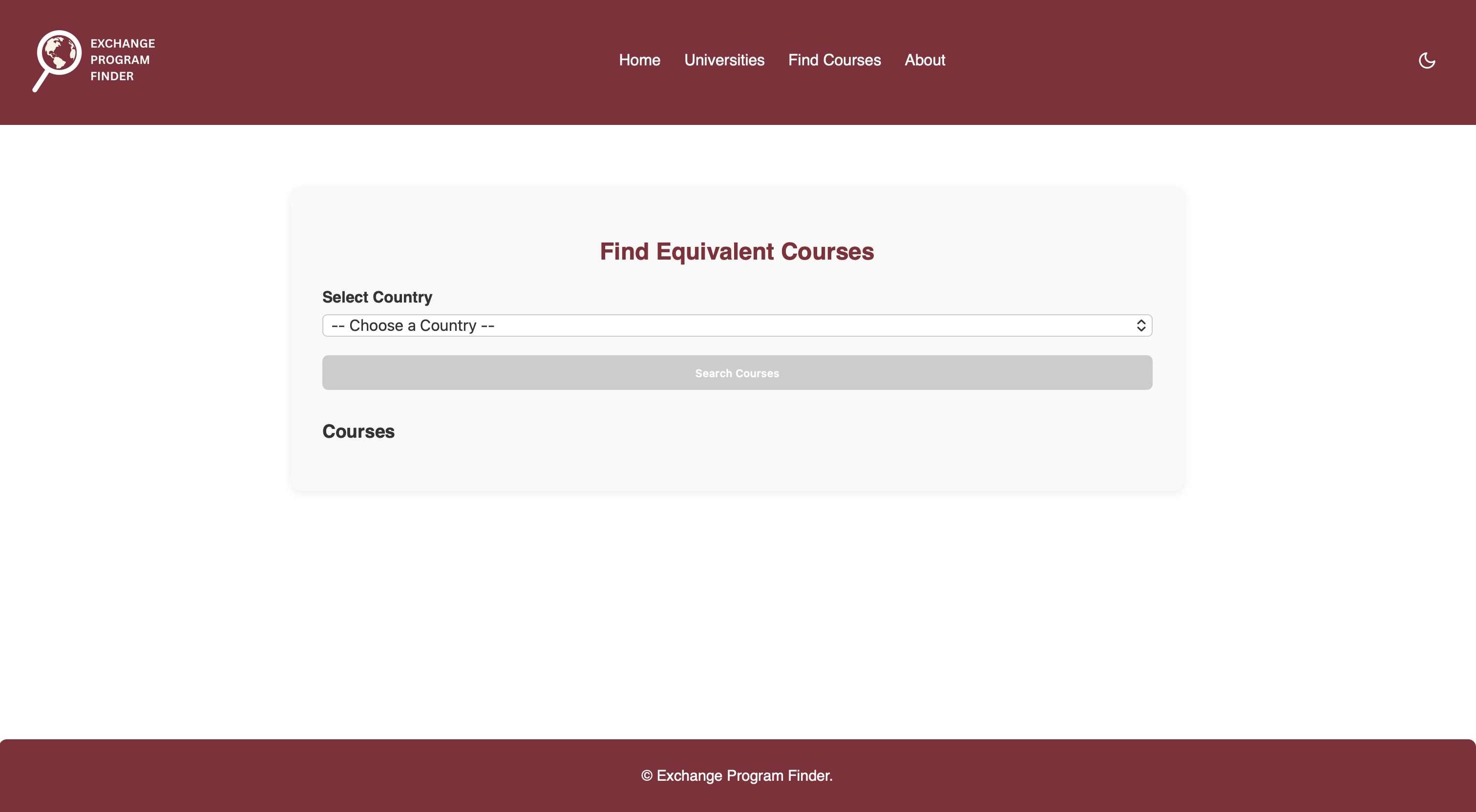 Select country → university → major code to view transferable courses - Toggle between dark and light mode for comfortable browsing
