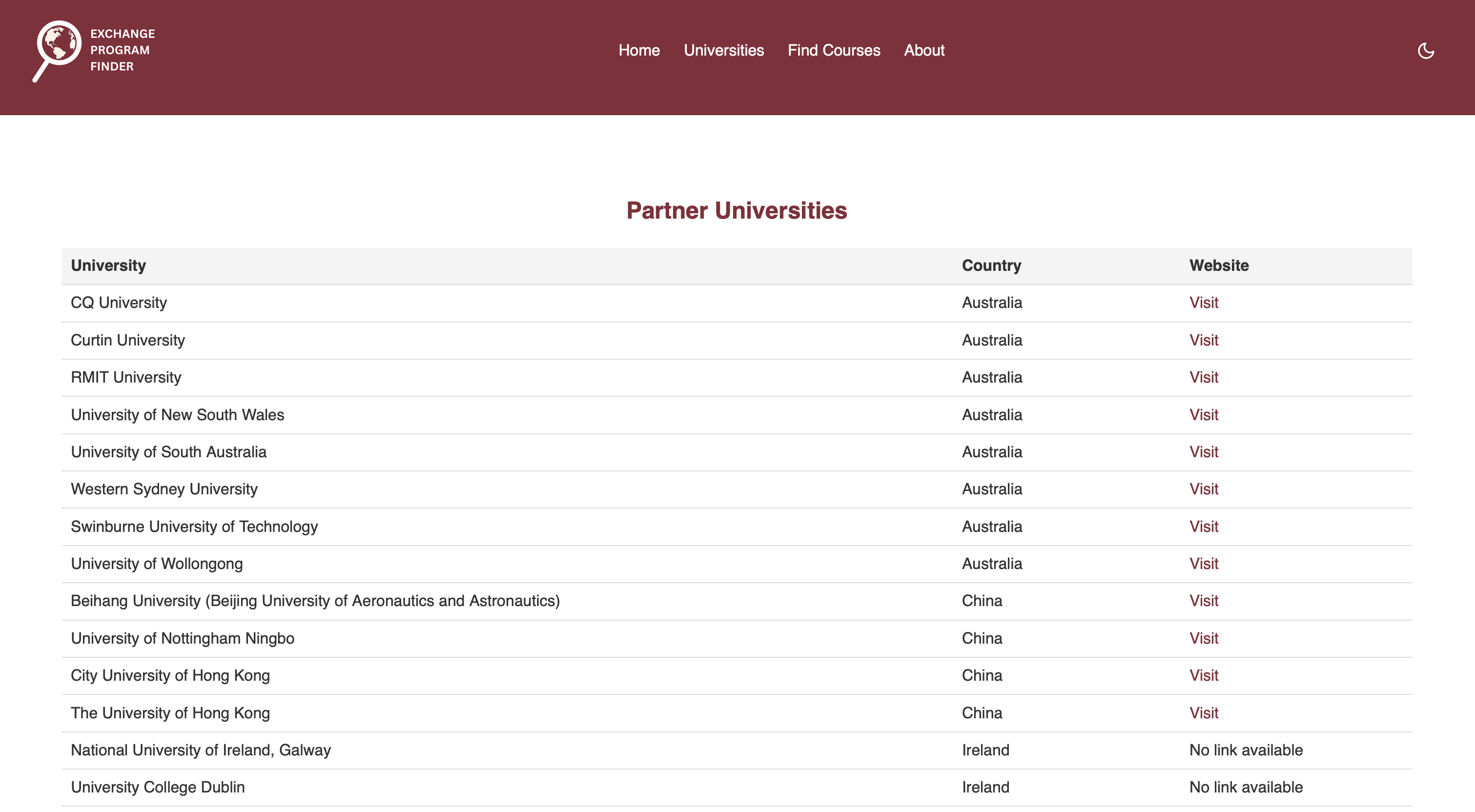 - Browse partner universities