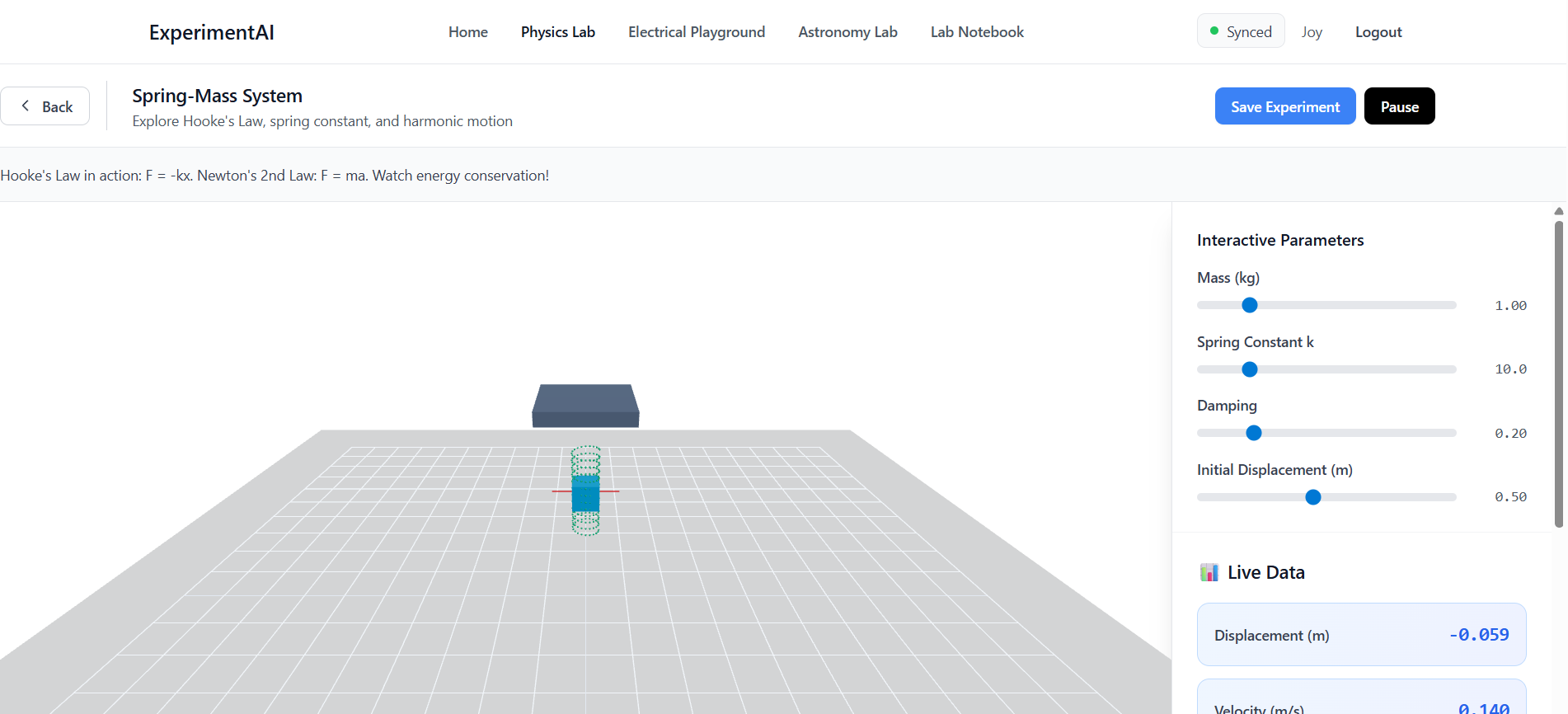 ExperimentAI is a local-first, AI-powered virtual lab that allows users to perform interactive physics, electrical, and astronomy experiments directly in the browser. Users can simulate systems, collect real-time data, and receive intelligent, context-aware explanations during and after experiments.