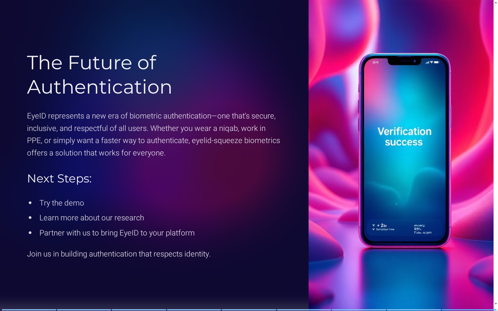 Passwords are broken. As a solo hacker, I wanted to build something that felt like the future—something you can't forget or lose. The eye is unique, personal, and always with you. That spark became EyeD.