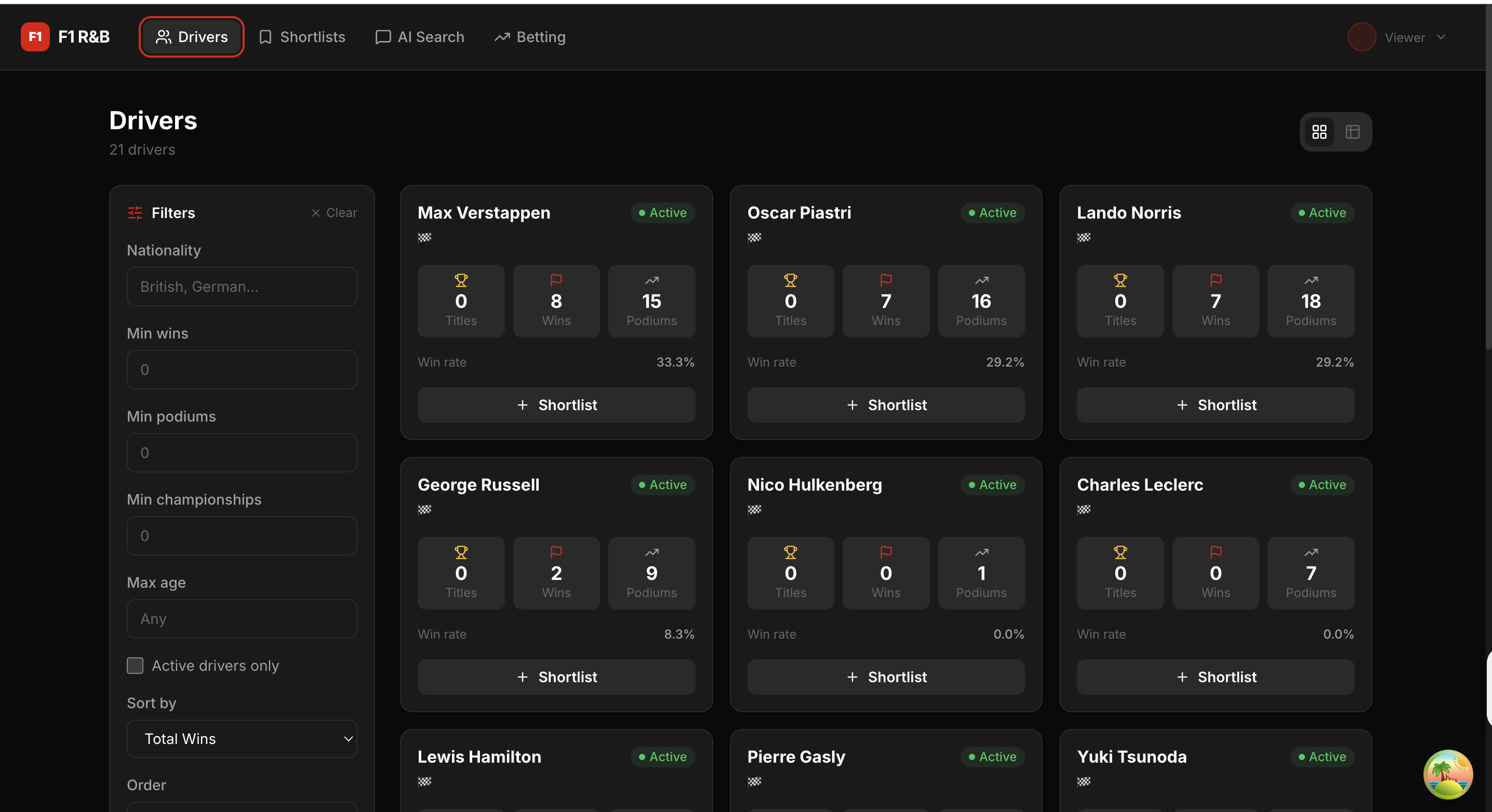 Supports F1 supporting companies and F1 betters with a predictive algorithm for winning.