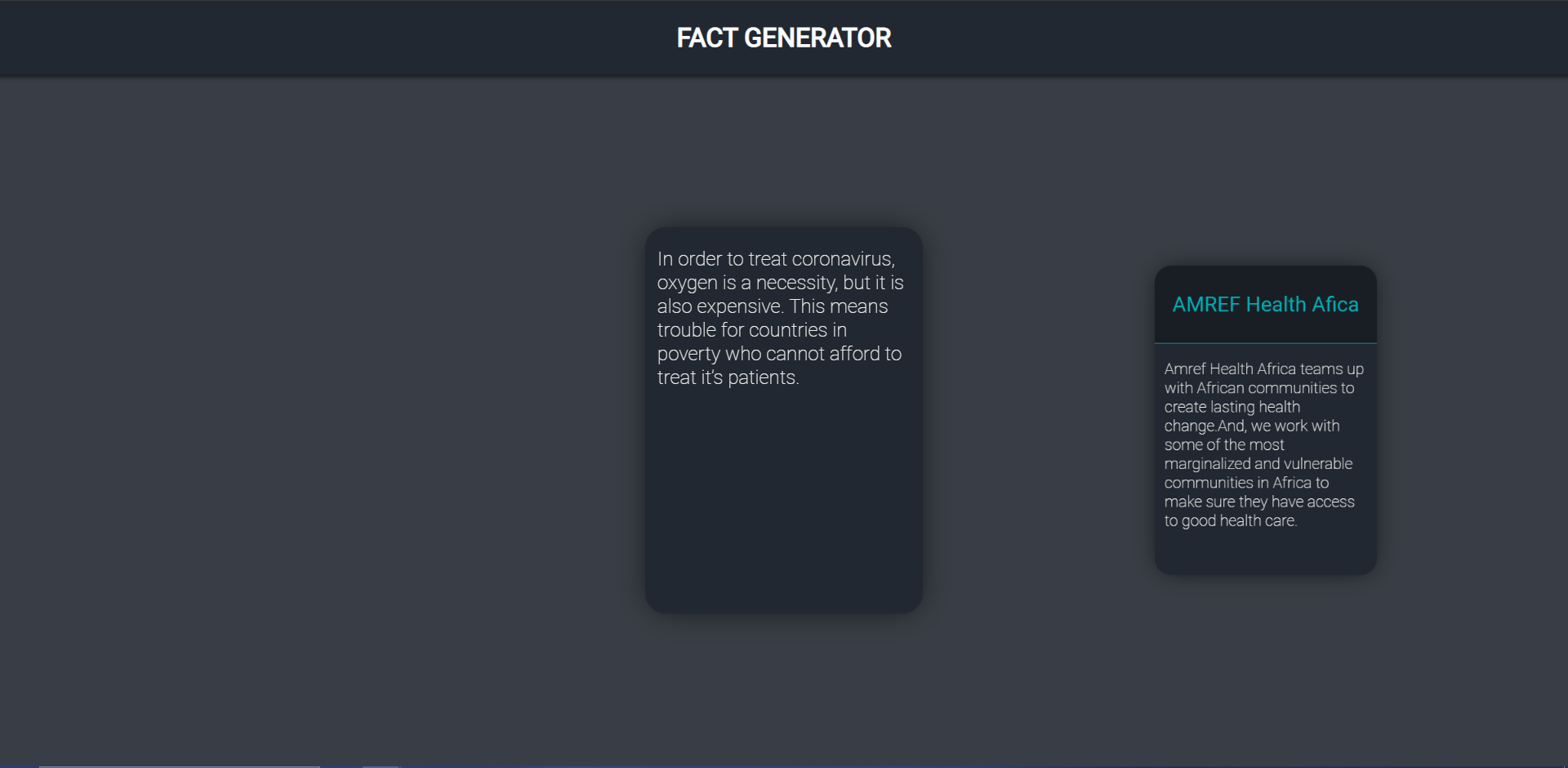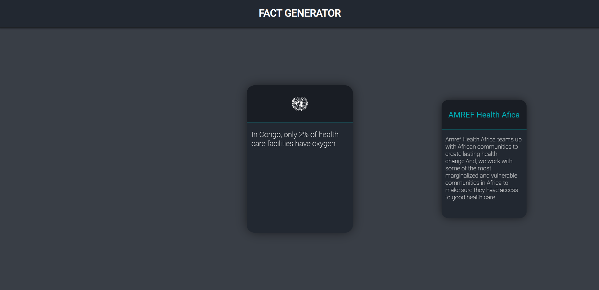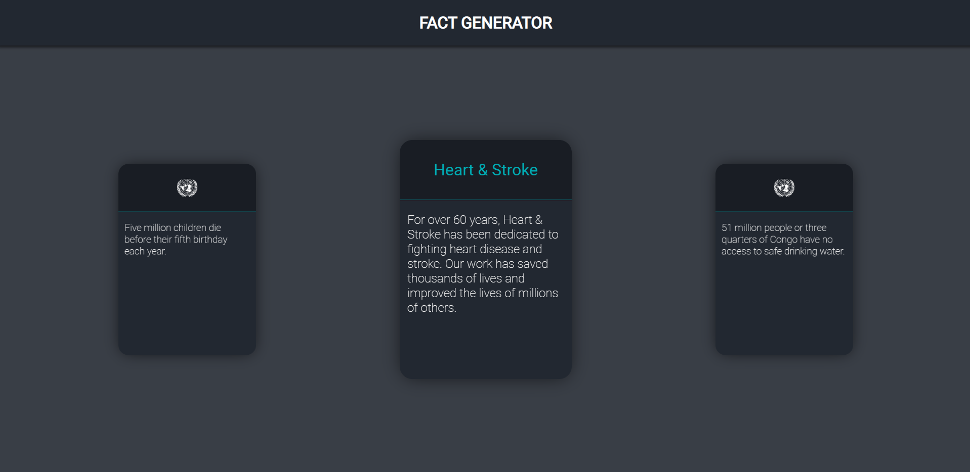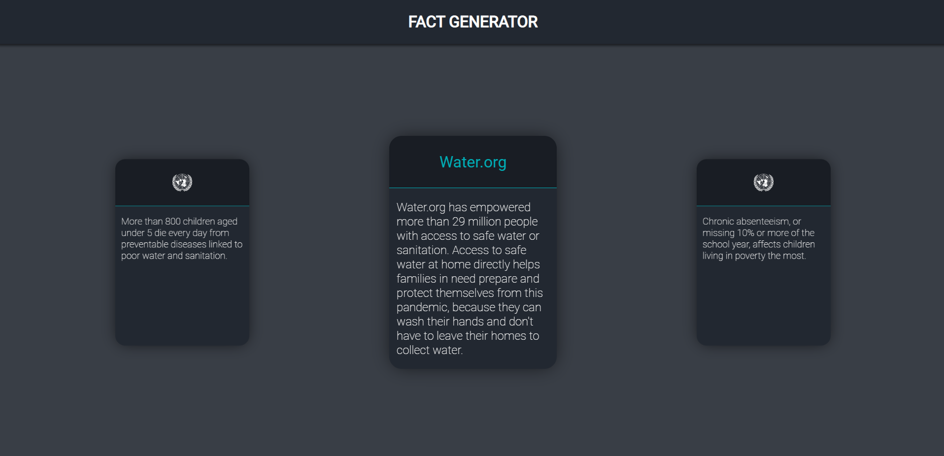 When you press a button, a random fact card will pop up featuring the SDG it falls under and the link to a random charity associated with the SDG.