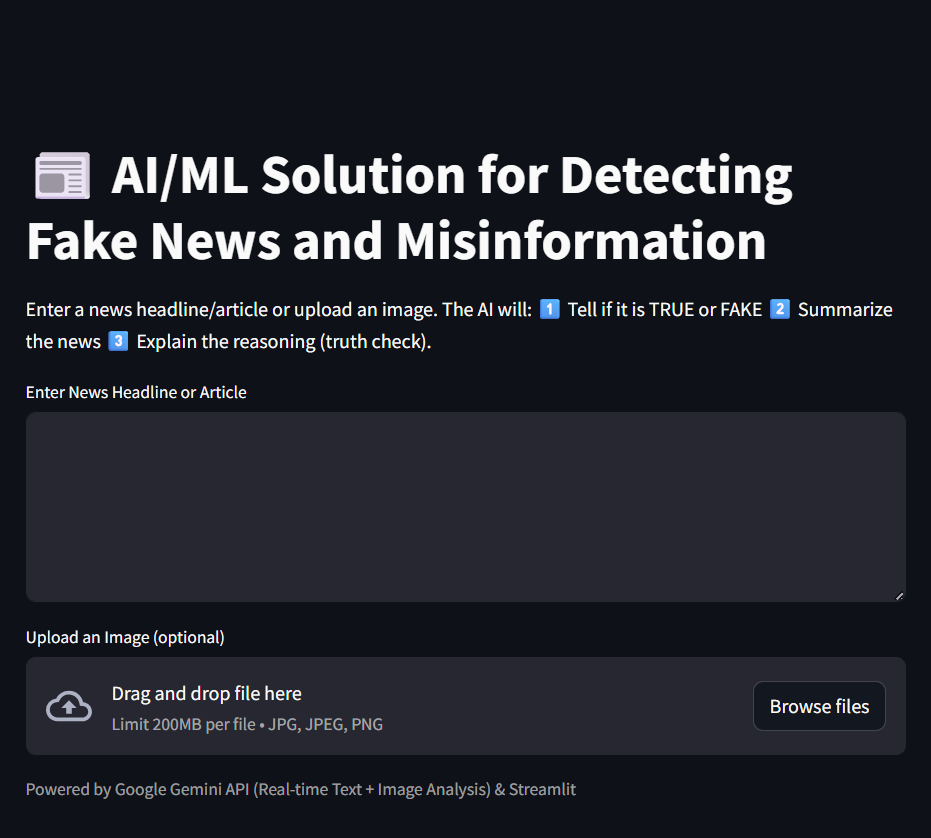 Inspiration The widespread dissemination of misinformation and "fake news" online creates a significant challenge for individuals trying to stay informed. Social media and news feeds can be overwhelming, making it difficult to discern credible information from false narratives. We were inspired to create a tool that would use the power of modern APIs to provide users with a more reliable and contextualized view of current events. What it does This tool offers a real-time news feed to help users assess information credibility. It gathers news from the News API. Then, it analyzes the news for context and potential misinformation using OpenAI and Gemini APIs. The tool cross-references the news with real-time social media sentiment and geolocation data from Twitter. The result is a personalized feed that shows current events and provides context to help users identify potential fake news. How it was built Several APIs were integrated to build this tool. The News API was used to get live headlines and articles. The text of these articles was passed to OpenAI and Gemini to perform natural language processing tasks. These tasks included summarization, sentiment analysis, and flagging of suspicious language or claims. The Twitter API was integrated to add a real-time, ground-level perspective. Geolocation was used to show what people are saying about a topic in a specific area. All API calls were organized and presented to the user through a clean interface. There was no need to train a model, as the existing intelligence of these services was used. Challenges encountered One of the main challenges was managing the large amount of data and API calls. Efficient asynchronous requests were implemented to avoid rate limits. This ensured a fast and responsive user experience. Synthesizing information from different sources into a clear format was another challenge. For example, a tweet from a specific location might contradict a headline from a major news outlet. Presenting this discrepancy in a meaningful way was a significant design challenge. Accomplishments A functional and insightful tool was created without a custom-trained machine learning model. By integrating existing APIs, a solution with fake news detection capabilities was quickly built. A dynamic user interface was successfully created. This interface combines data from different sources into a single, comprehensive view. What was learned The project demonstrated the power and flexibility of modern APIs. It showed that it is not always necessary to build a solution from the ground up. Leveraging services like OpenAI, Gemini, and News API can accelerate development and lead to innovative solutions. Valuable experience in data synthesis and real-time data processing was also gained. Future plans for fake news detection The next step for this project is to implement a user feedback system. This would allow users to flag potential fake news, which could refine the system's accuracy. Exploring the integration of more APIs, such as fact-checking databases, is also planned. The goal is to develop a platform that detects fake news and educates users on how to identify it.