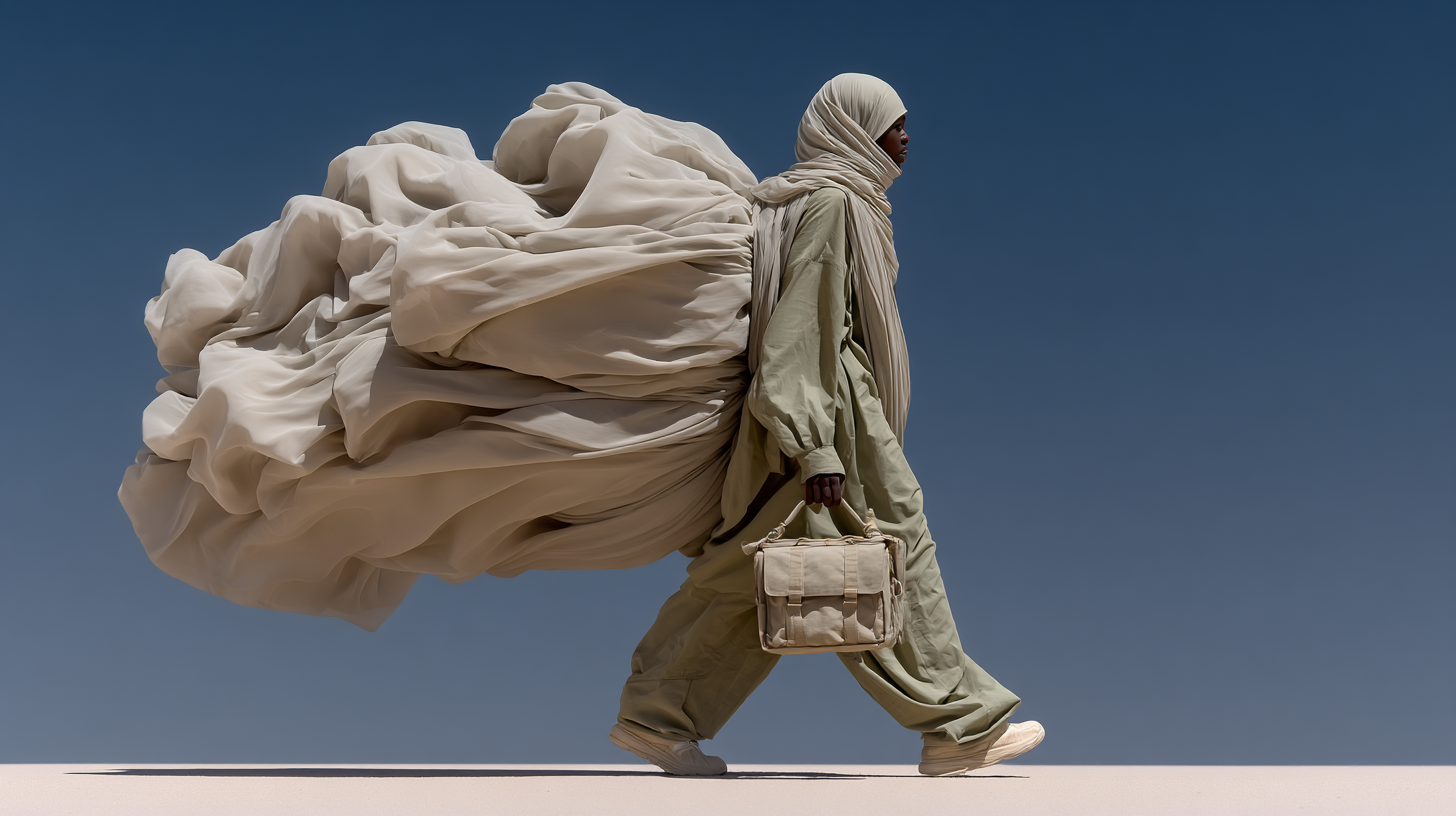 Shows the plight of a person traversing the desert (a metaphor for life) and falling down many times, but always getting up and continuing their journey
