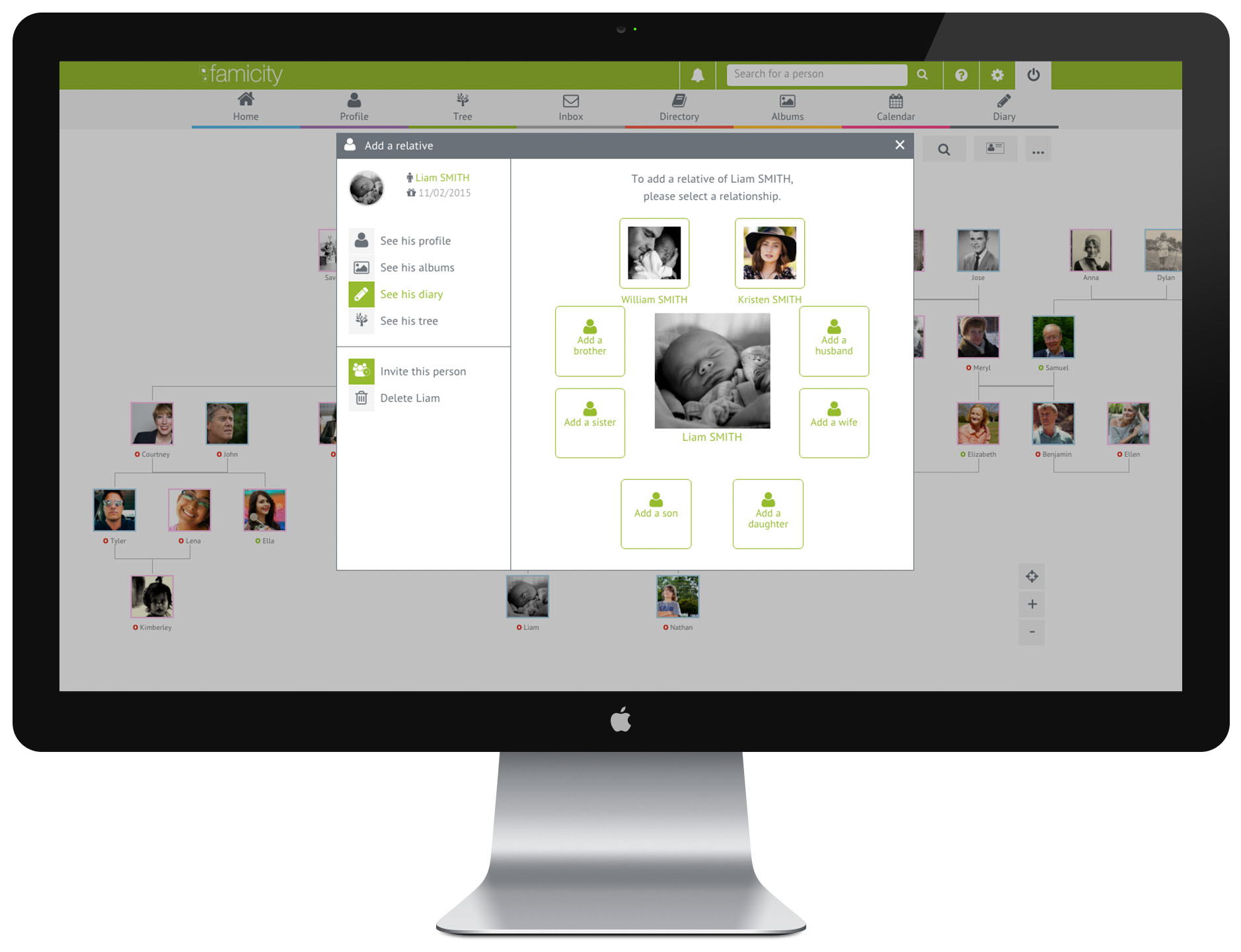 Famicity allows you to preserve and enhance your family legacy, from your roots to your future. First, a member can create his family tree (step by step or via a Gedcom import), and invite his family members. Then, the family members will join him on the website and start gathering all the stories, albums or pictures they hold. Every profile on the tree has his own diary and can be enriched by any member of the family. But still, all this content is only shared with the people you let in. Famicity is not just about ancestors. Everyone can write, share, and preserve his own story. The goal is to create, all together, an amazing tool that will be used to keep and transmit a family memories.