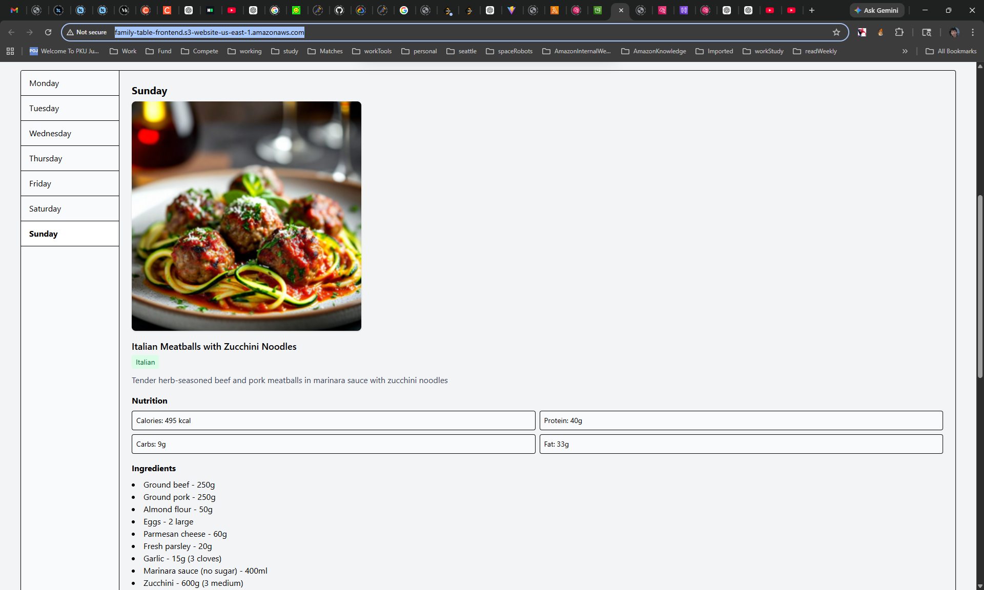 - The backend uses AWS Bedrock to generate a weekly dinner plan tailored to the family’s needs.