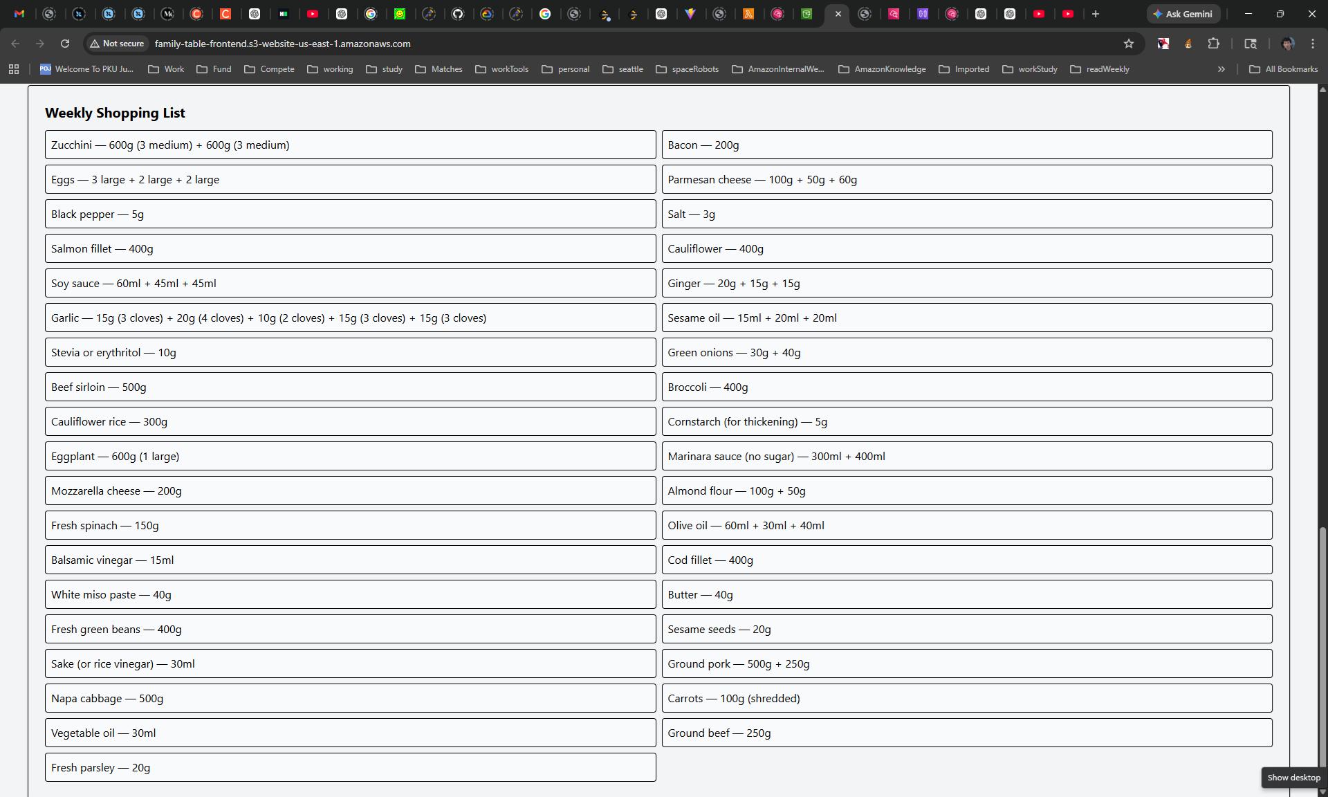 - It automatically merges ingredients across the entire week to create a consolidated shopping list.