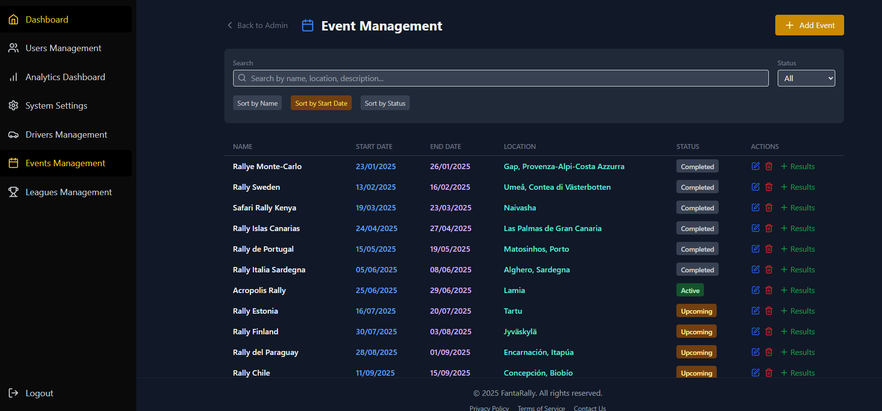 FantaRally is a fantasy rally management game. Players create their own virtual team by selecting real drivers from various rally championships like WRC, ERC, and national series. Each driver has a cost, so players must balance their team within a budget. Based on real-world rally results, drivers earn points, and users compete in leagues, tournaments, or private groups.