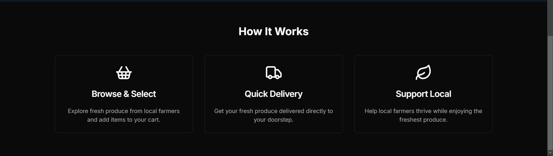 What it does FarmFresh is an online marketplace that connects local farmers with consumers seeking fresh, high-quality produce. Farmers can create profiles, list their products, and manage inventory, while consumers can browse, order, and receive their produce directly from local farms, ensuring a farm-to-table experience.
