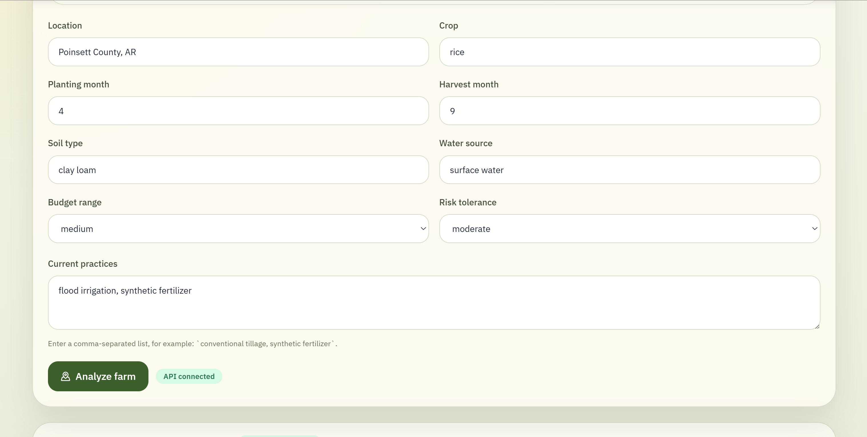 - Persona-Based Analysis: Scrapes hyper-local news and weather signals to build a specific "Farmer Profile."