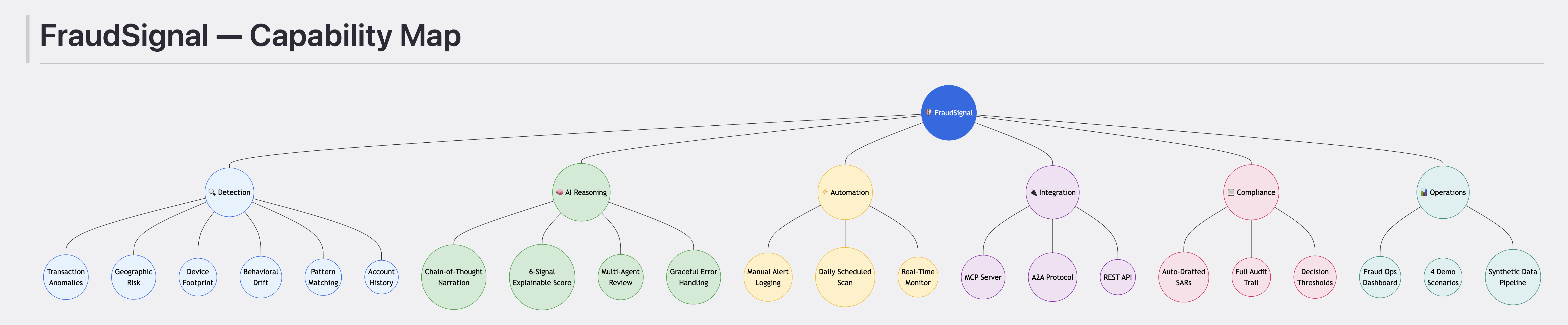 FraudSignal is an autonomous, multi-agent AML intelligence system that doesn’t just detect fraud — it thinks like an investigator. It proactively plans its approach, reasons across six powerful signals (transaction anomalies, impossible travel, device spoofing, behavioral drift, pattern matching, account history), calculates an explainable risk score, and takes decisive action: freezing accounts, logging alerts, auto-drafting regulatory-ready SARs, and routing high-stakes cases to a dedicated ComplianceReviewer agent for independent validation. Every conclusion is transparent, auditable, and defensible.