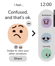 To prevent misuse and visual overload, Felt only allows the user to select up to four concurring emotions, mitigating confusion.