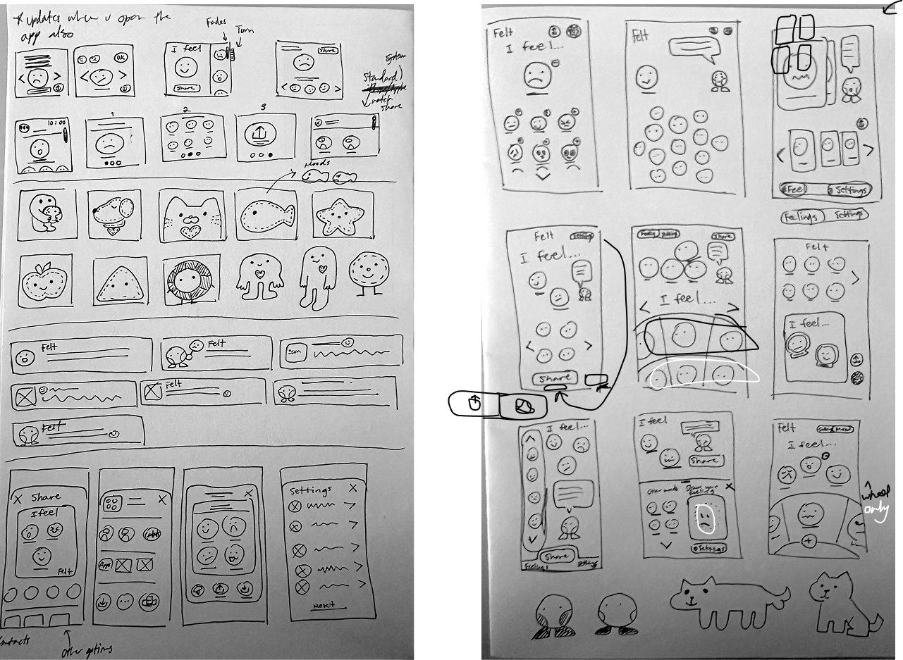 The next updates to Felt should include visibility settings (such as differing color modes) to improve Felt's accessibility, especially since the product may be highly suitable for users with certain disabilities. A useful and/or profitable addition would be short lessons on emotional intelligence and expression. Lastly, we're considering a feature where users get to draw a mood for themselves, in the event that none of the listed moods fit them, which also allows them a healthy creative form of emotional expression.