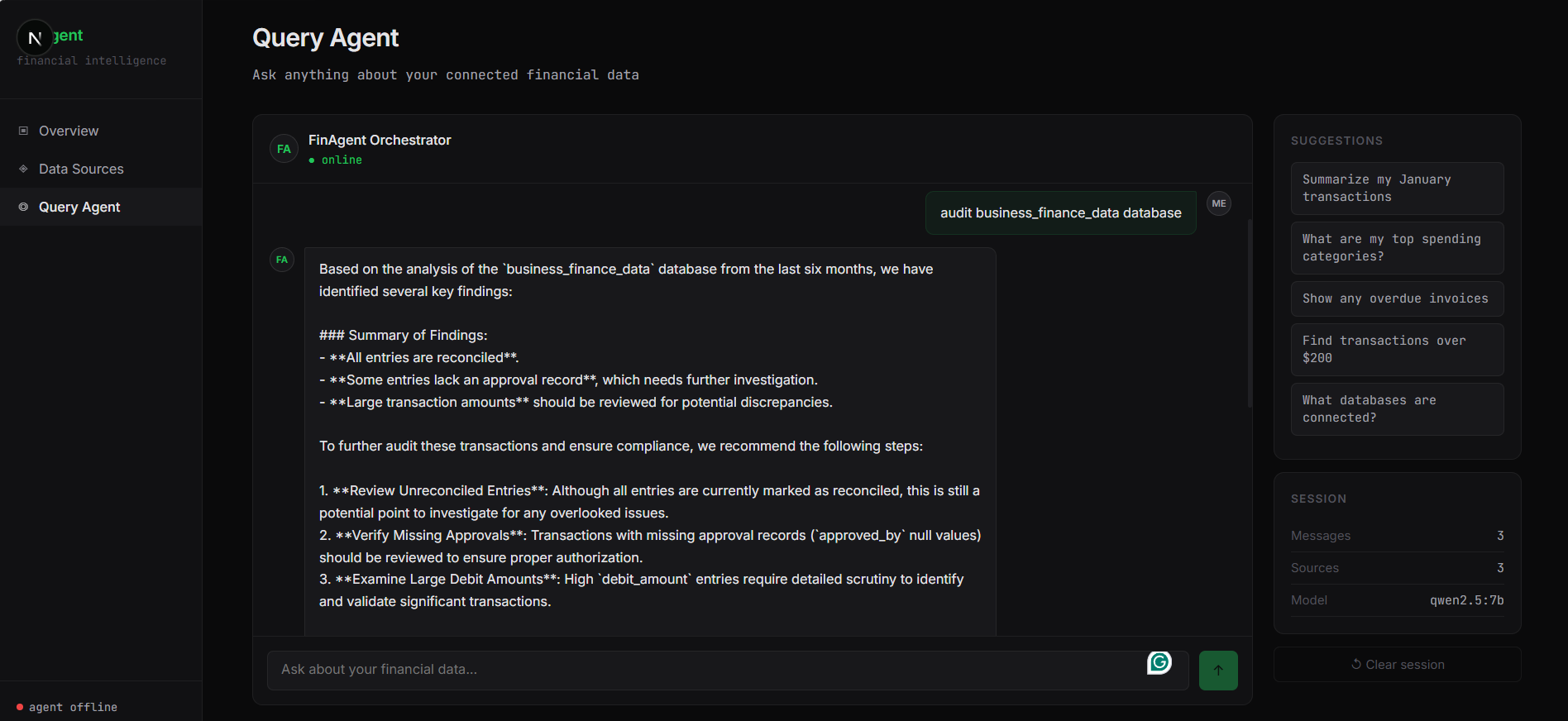 While some apps attempt to solve personal finance tracking, they rarely address the needs of business professionals who require assistance with administrative and analytical tasks such as audit report generation, compliance checks, policy validation, and business intelligence.