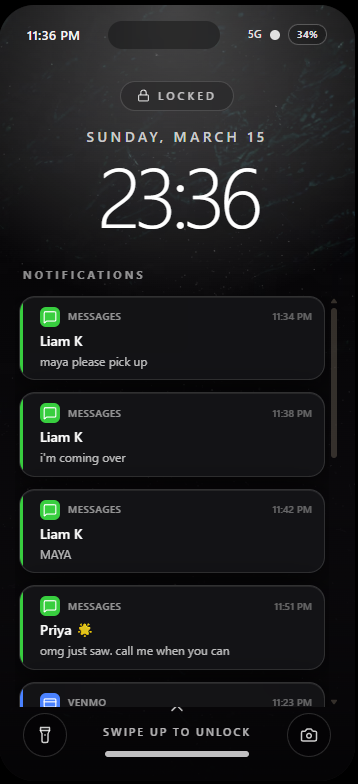 The hardest problem was designing the mystery logic itself. Since we had a specific set of evidence, every single item had to mean something. A Venmo transaction, a deleted photo, or a calendar entry all had to connect to something else and hold up under scrutiny from any direction a player might approach it. Making the clues logically consistent, well-paced, and satisfying to uncover required a lot of trial and error with both the story structure and how the evidence showed up across the simulated apps.