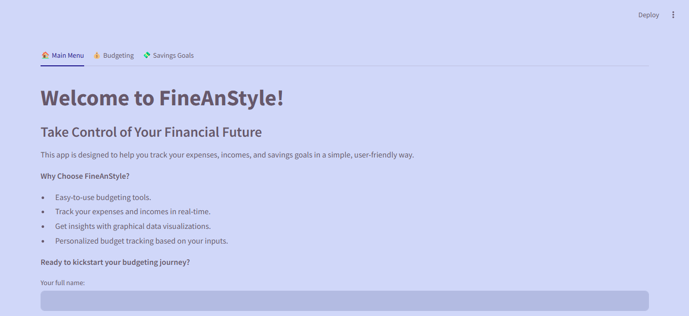 The inspiration behind FineAnStyle came from the need for a simple yet effective tool to help people control their personal finances. Many struggle with budgeting, including us, so we wanted to create a platform where users could easily track their income, expenses, and savings, allowing them to make informed financial decisions and work towards their goals of a secure financial future.