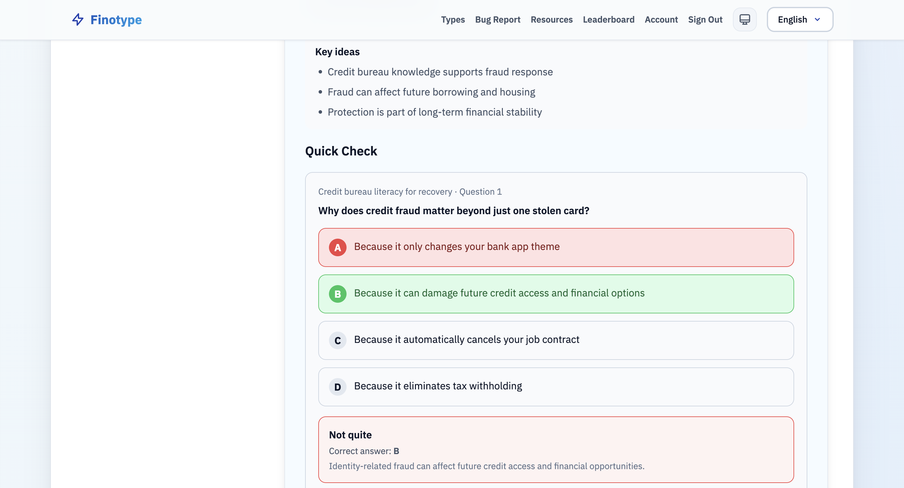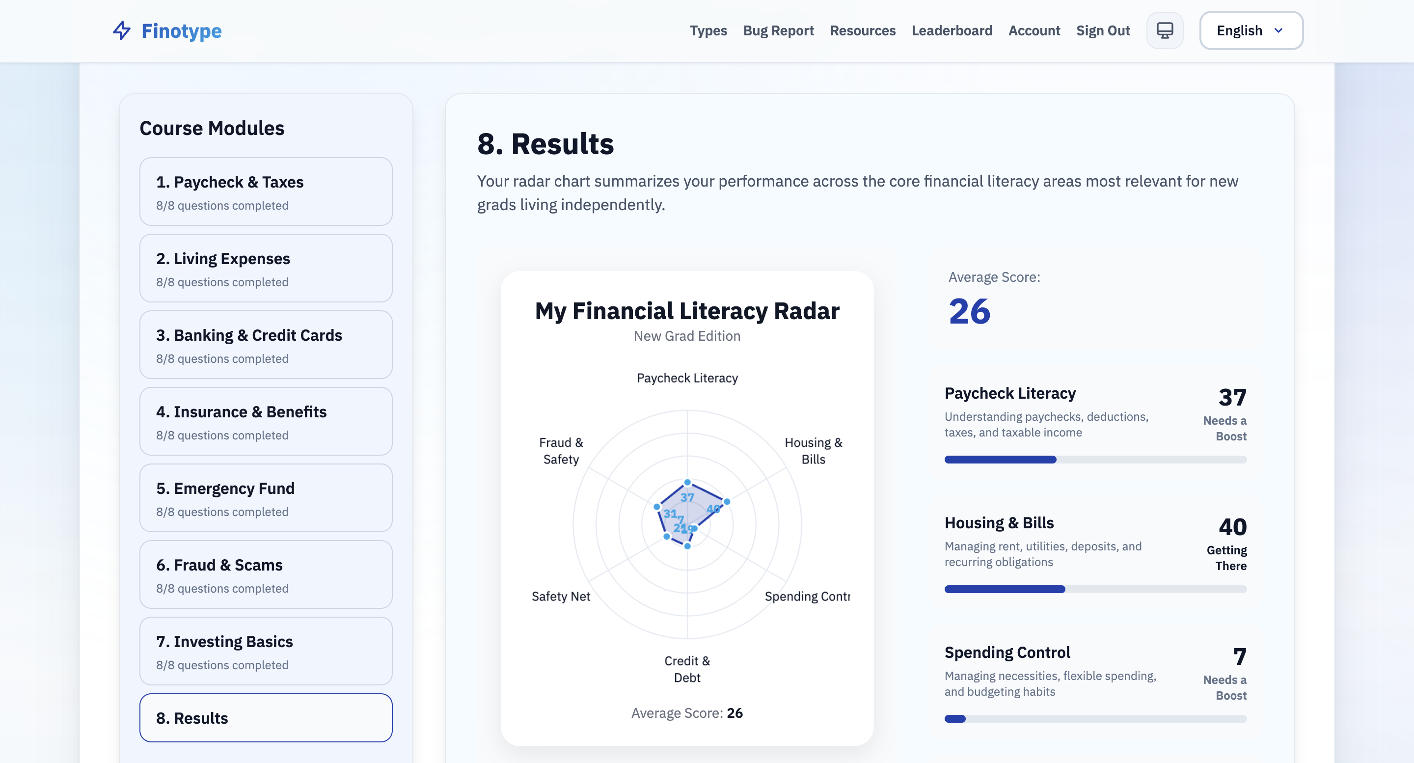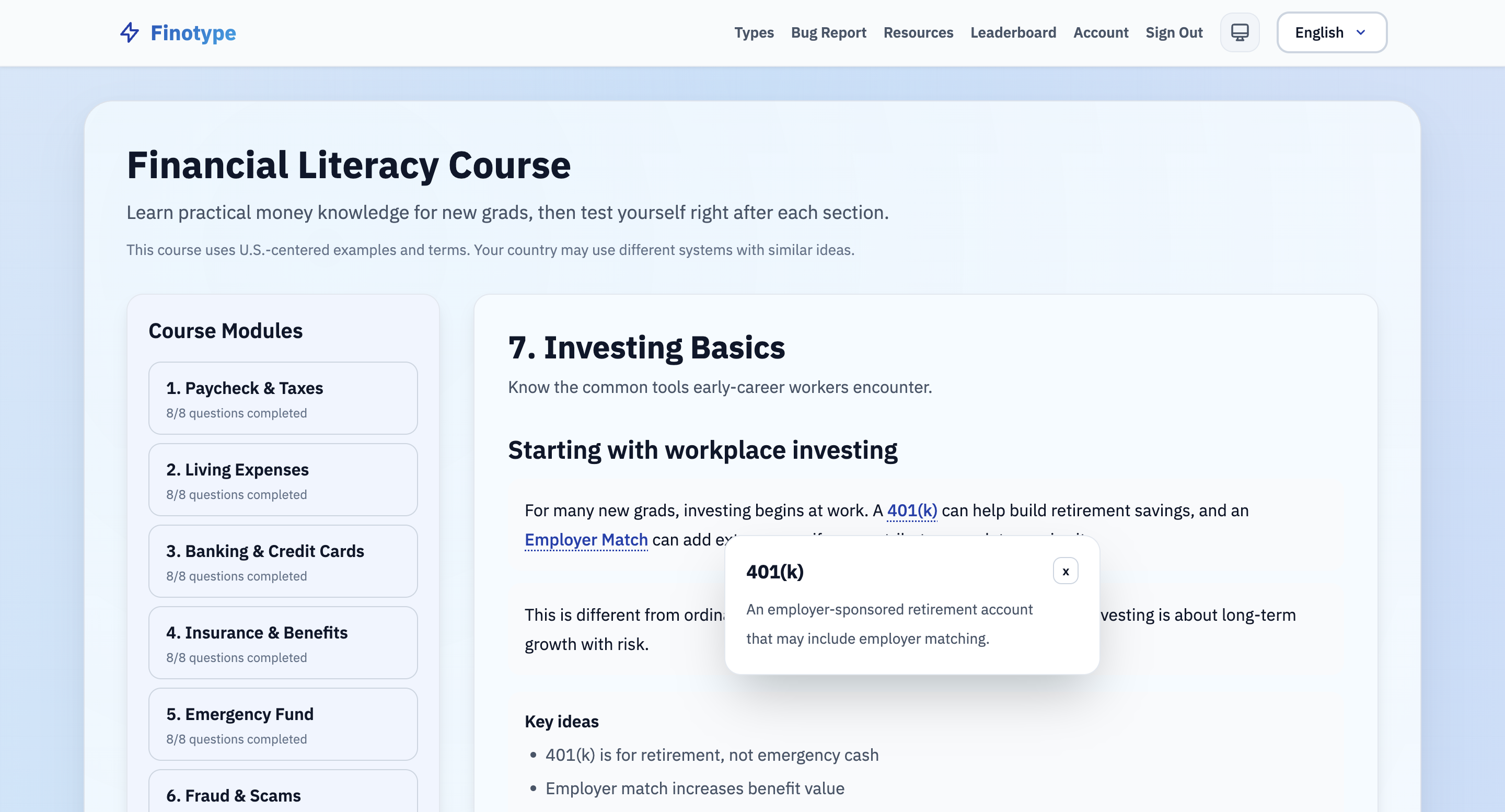 Finotype is an interactive financial literacy platform that combines behavioral insights with structured learning.