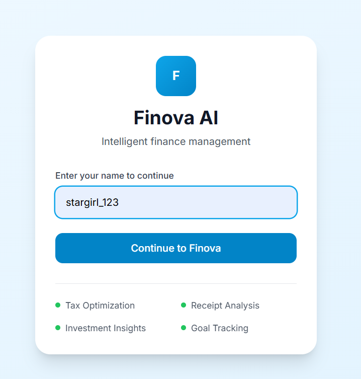 A working AI-powered finance assistant. Finova AI isn’t just a dashboard; it’s a tool that can think and analyze user data intelligently.