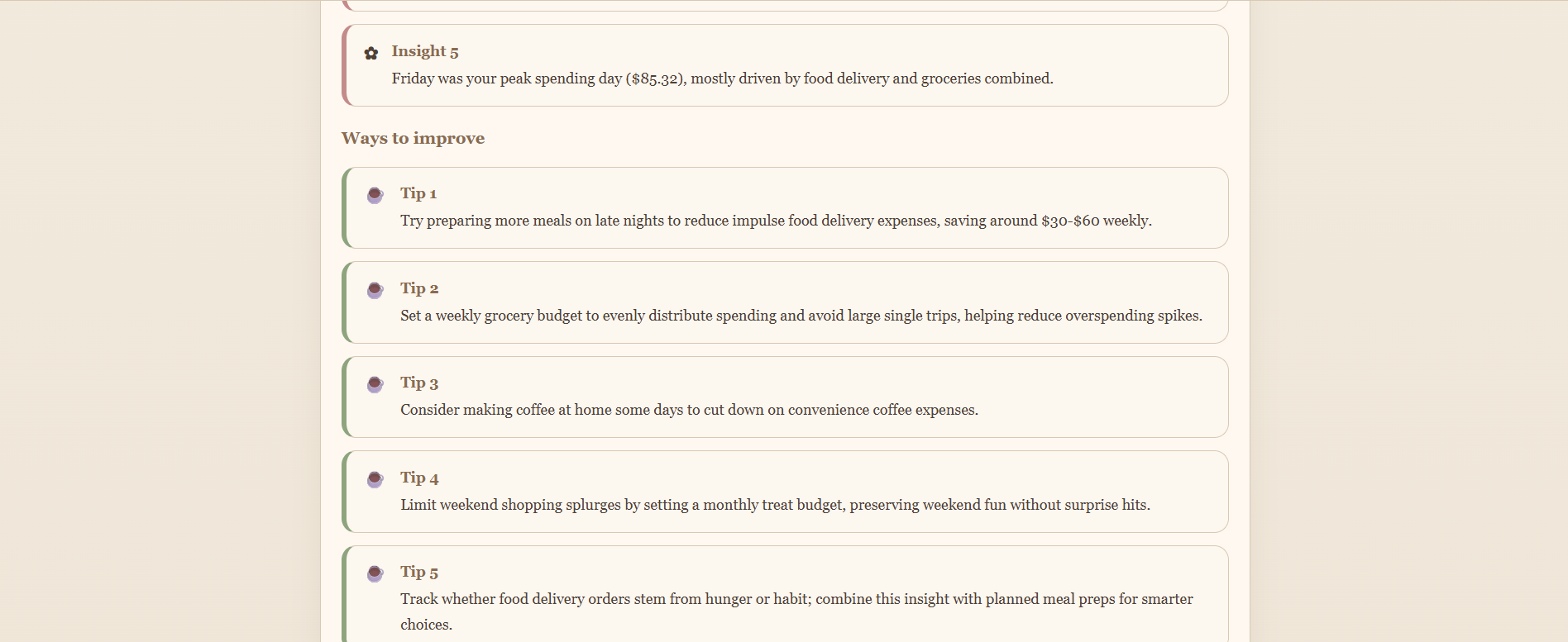 - A summary of spending is generated