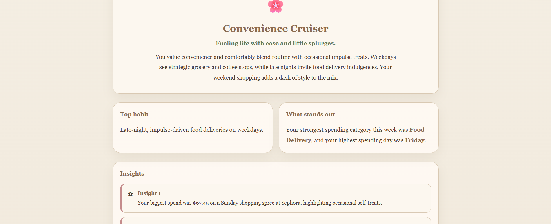 - generates an AI-powered spending persona